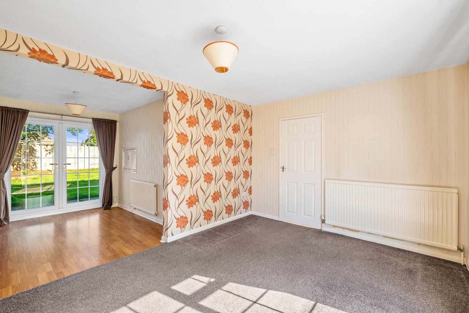 Double glazed French doors opening to rear garden, radiator.