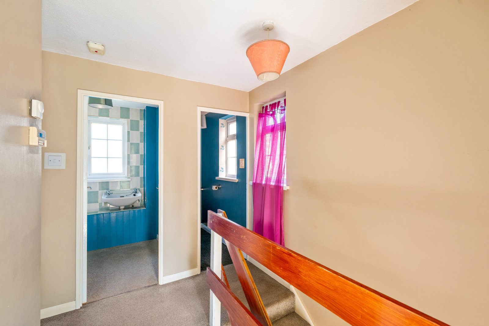Double glazed window to side, airing cupboard housing hot water cylinder.
