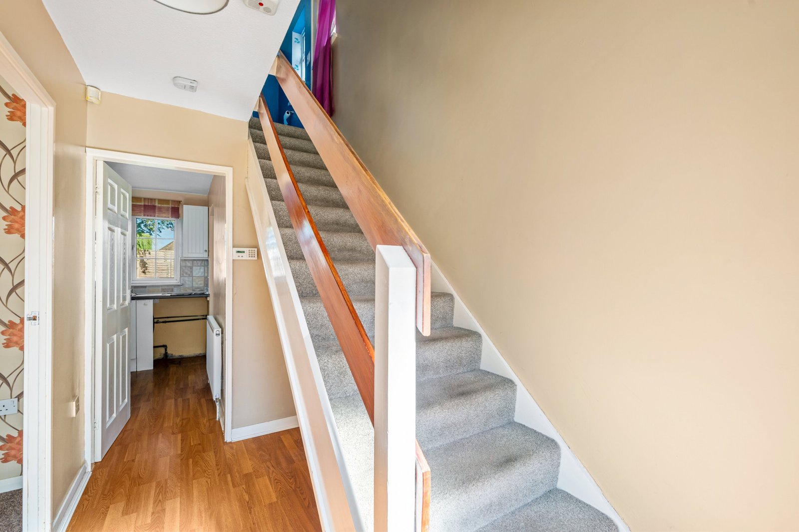 Entrance door and double glazed window to front, stairs rising to first floor, radiator.