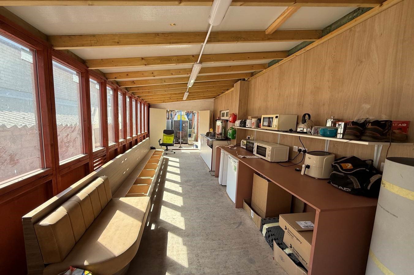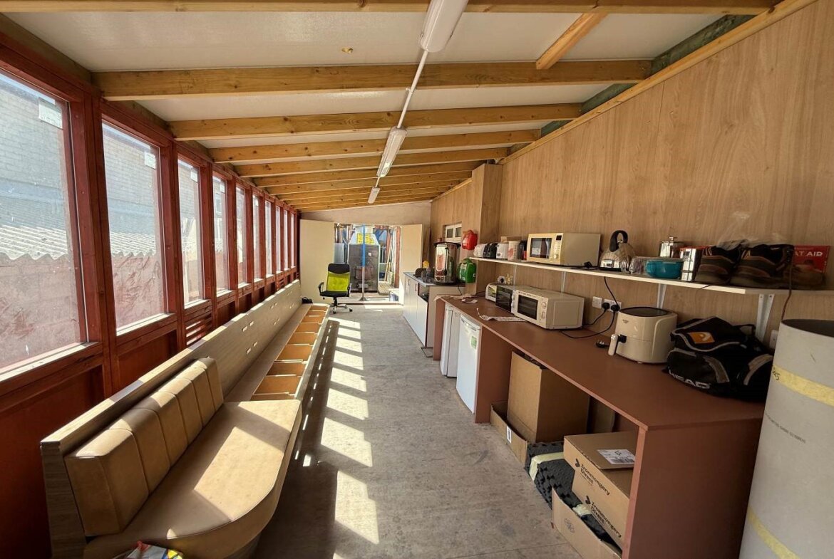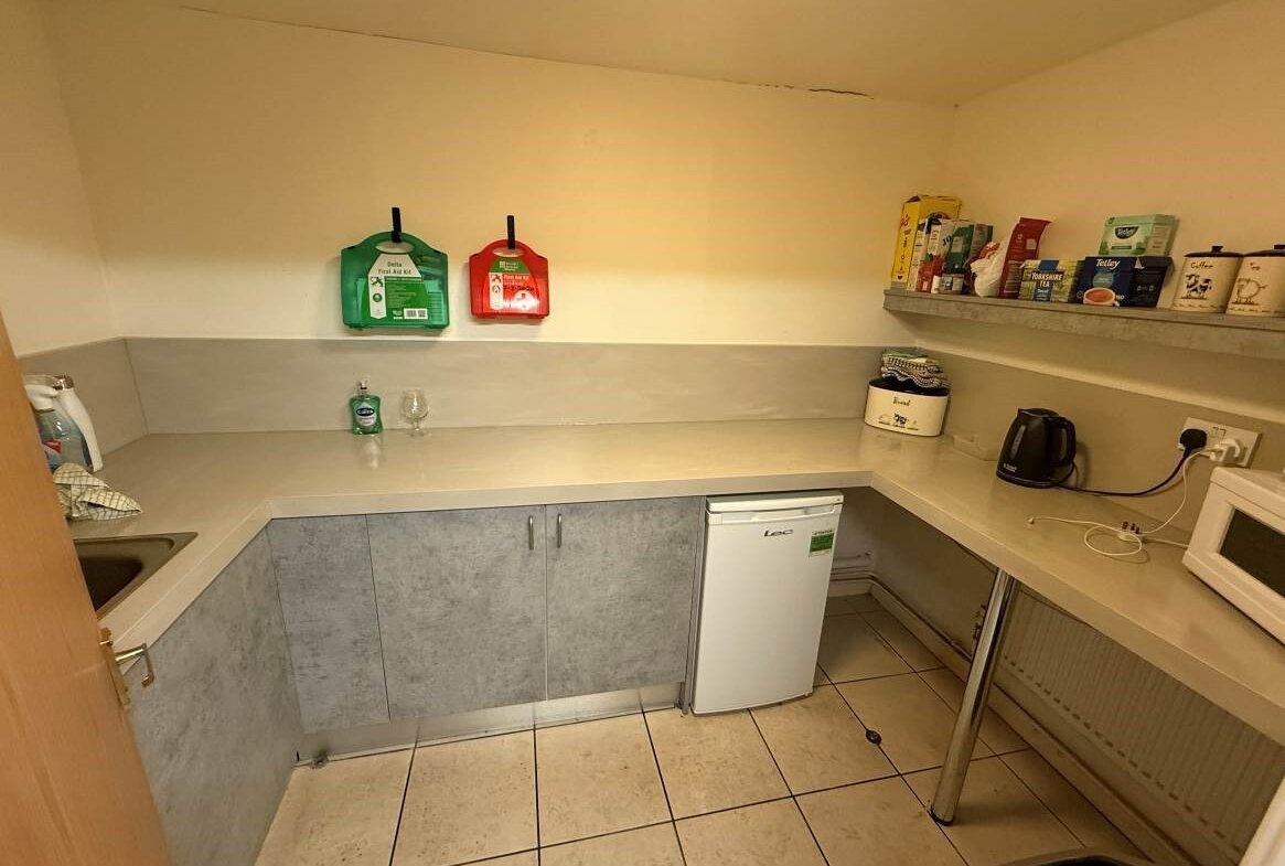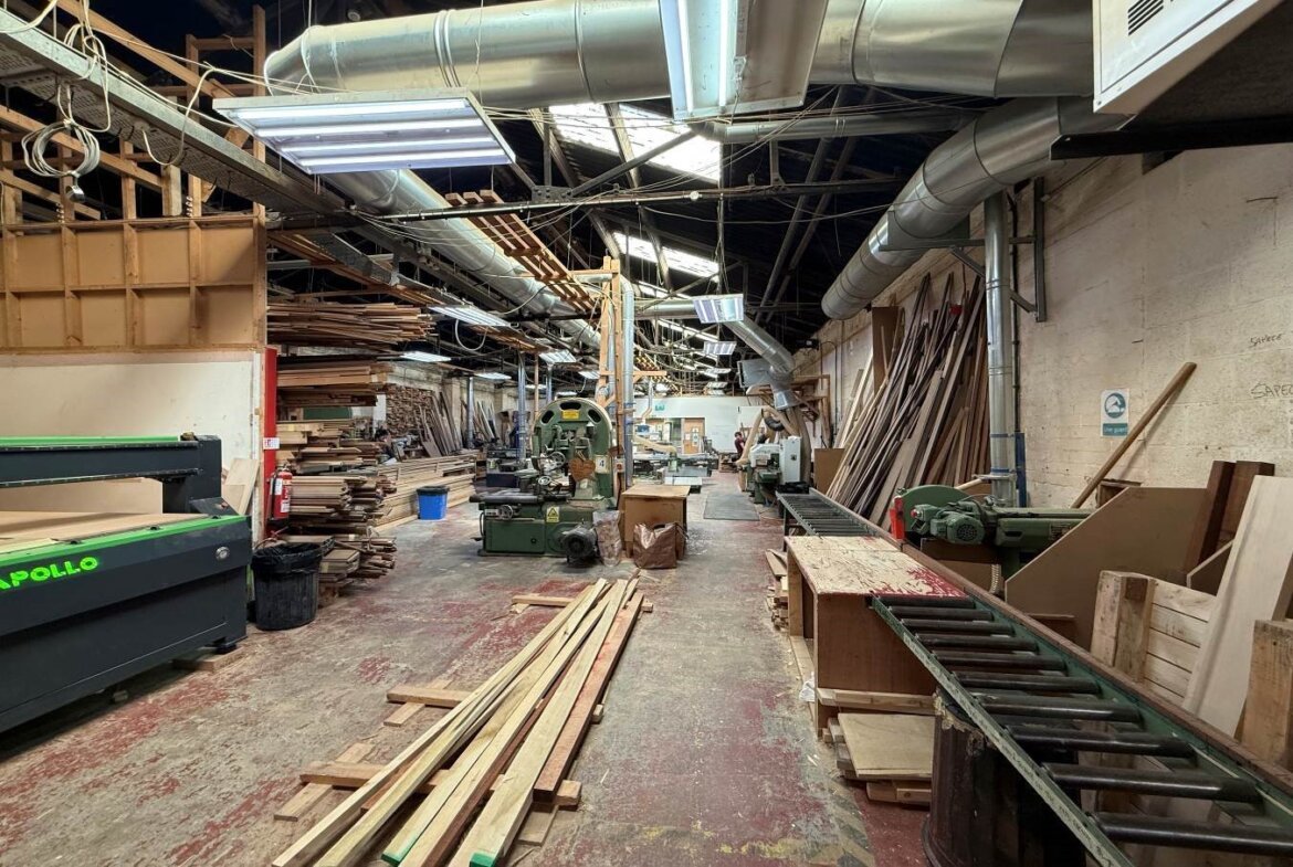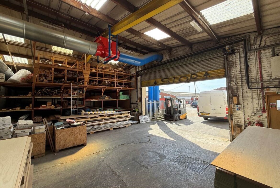The warehouse / workshop unit is split into two main bays, also provides sub-divided storage, staff room, office space and WC.
