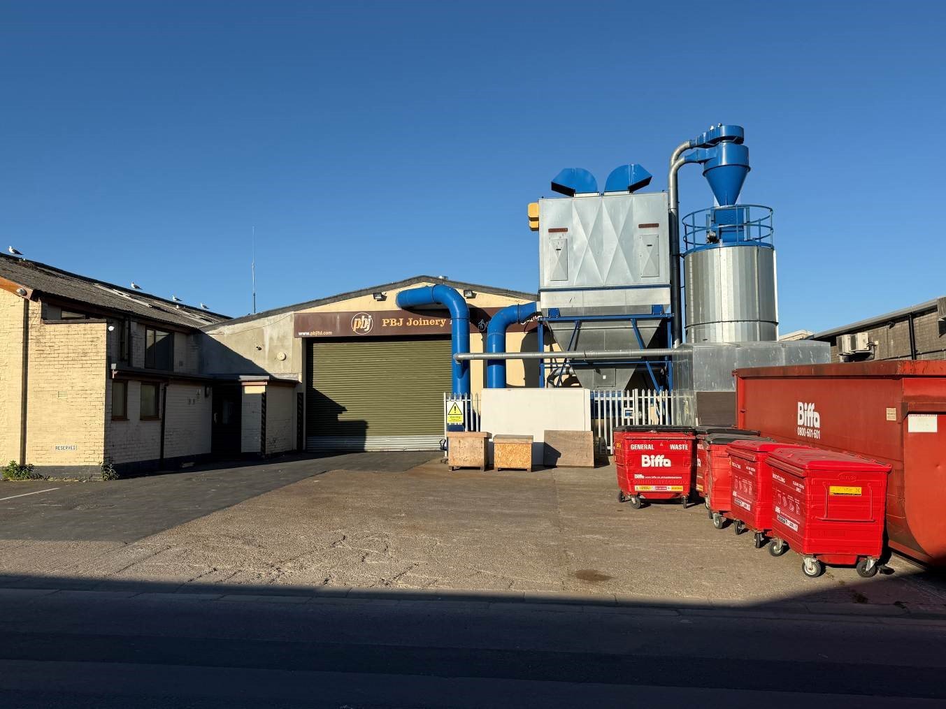 A front yard provides loading space, plus parking or hard standing business space. Roller shutter vehicle door access to the front.