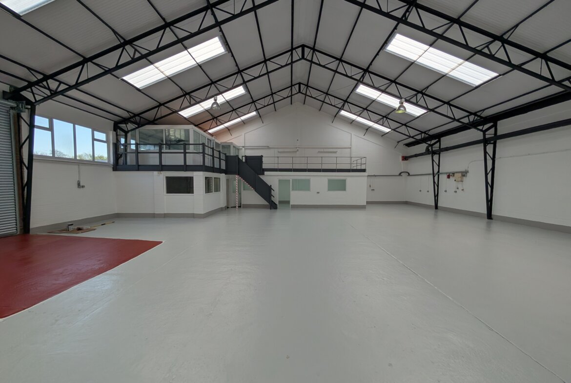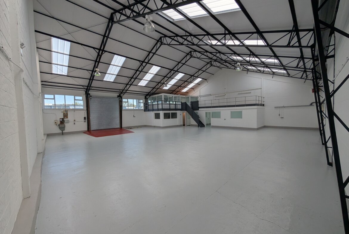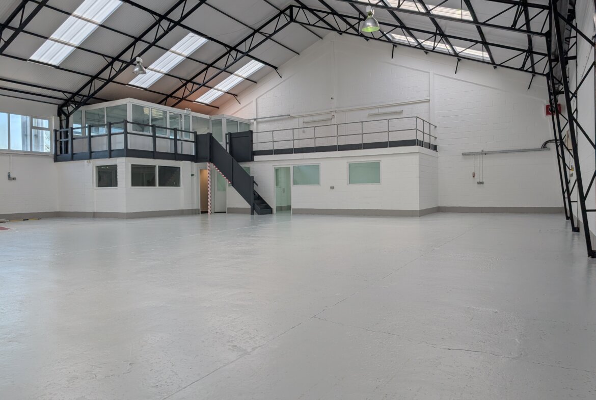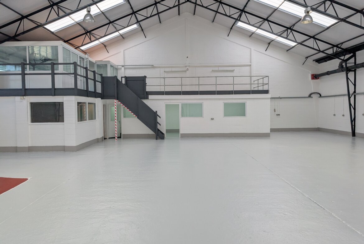 The property comprises a mid-terrace industrial/warehouse unit of steel frame construction with profile metal clad elevations beneath a pitch roof incorporating translucent roof lights. The unit also benefits from an entrance lobby, office area and first floor mezzanine suitable for storage or office use.