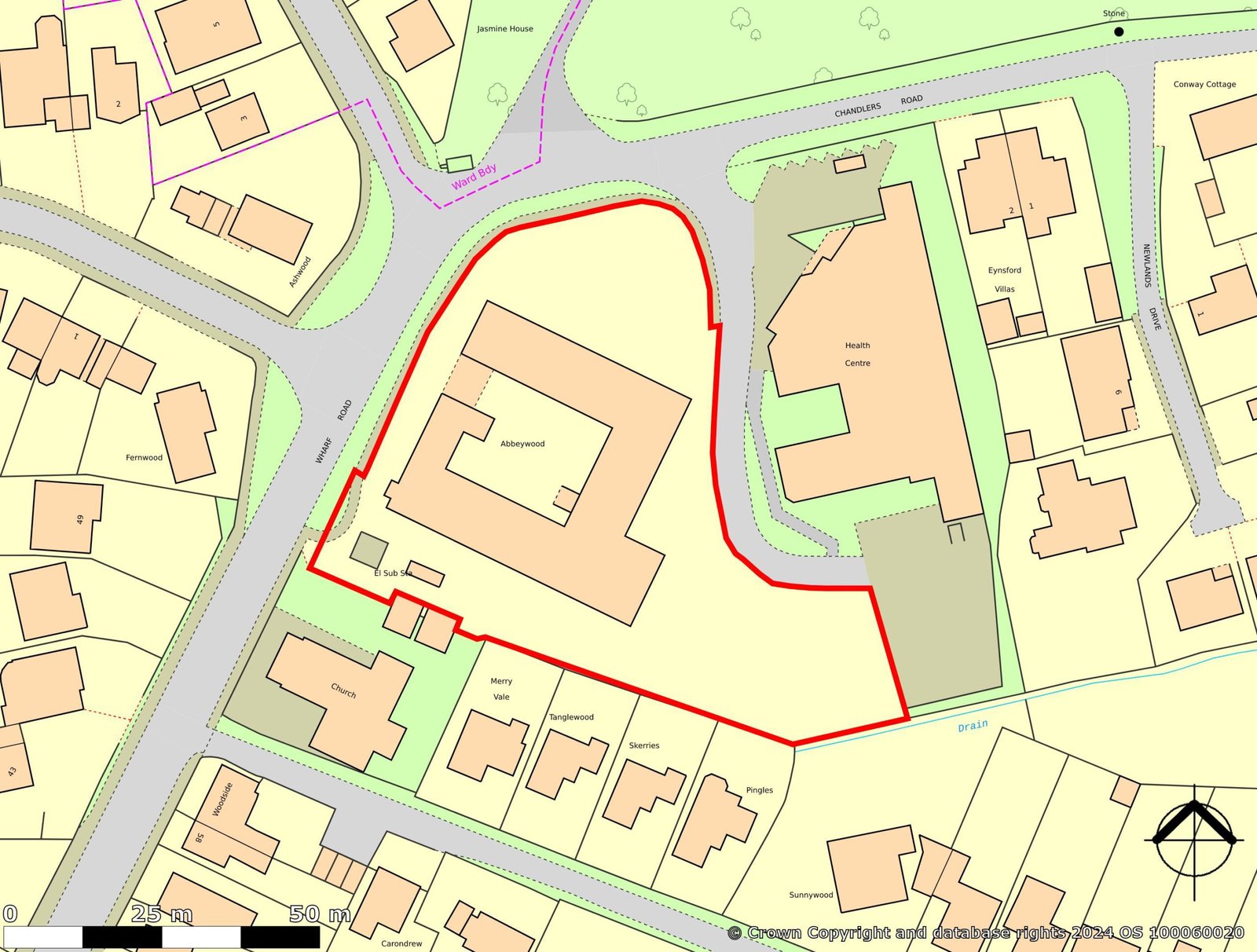 Abbeywood comprises a former care home, built in the 1980s, prominently located fronting Wharf Road & the corner of Chandlers Road. The site comprises the main building arranged around a large central courtyard with ancillary out buildings to the rear. Pedestrian access is from Wharf Road, with access to the car park (17 car parking spaces) to the rear via Chandlers Road.