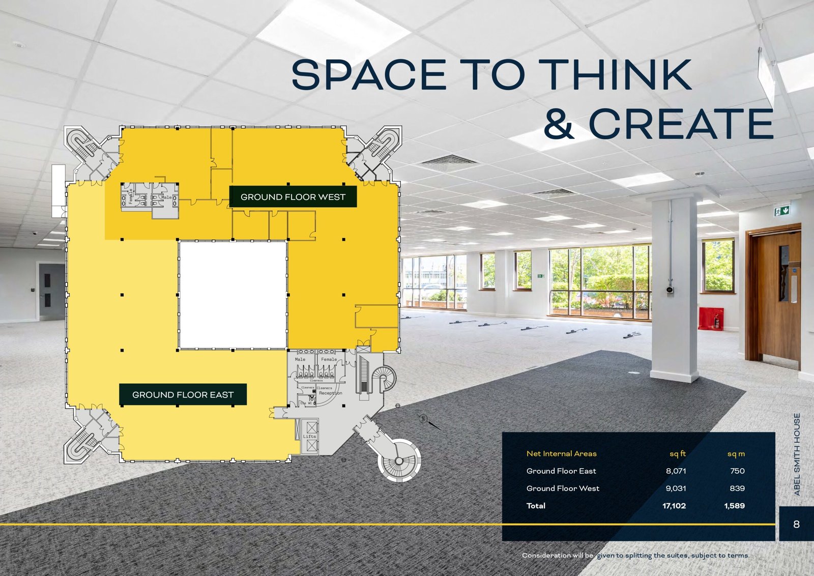 The available suite is on the ground floor providing a large open plan floor plate with excellent natural light.