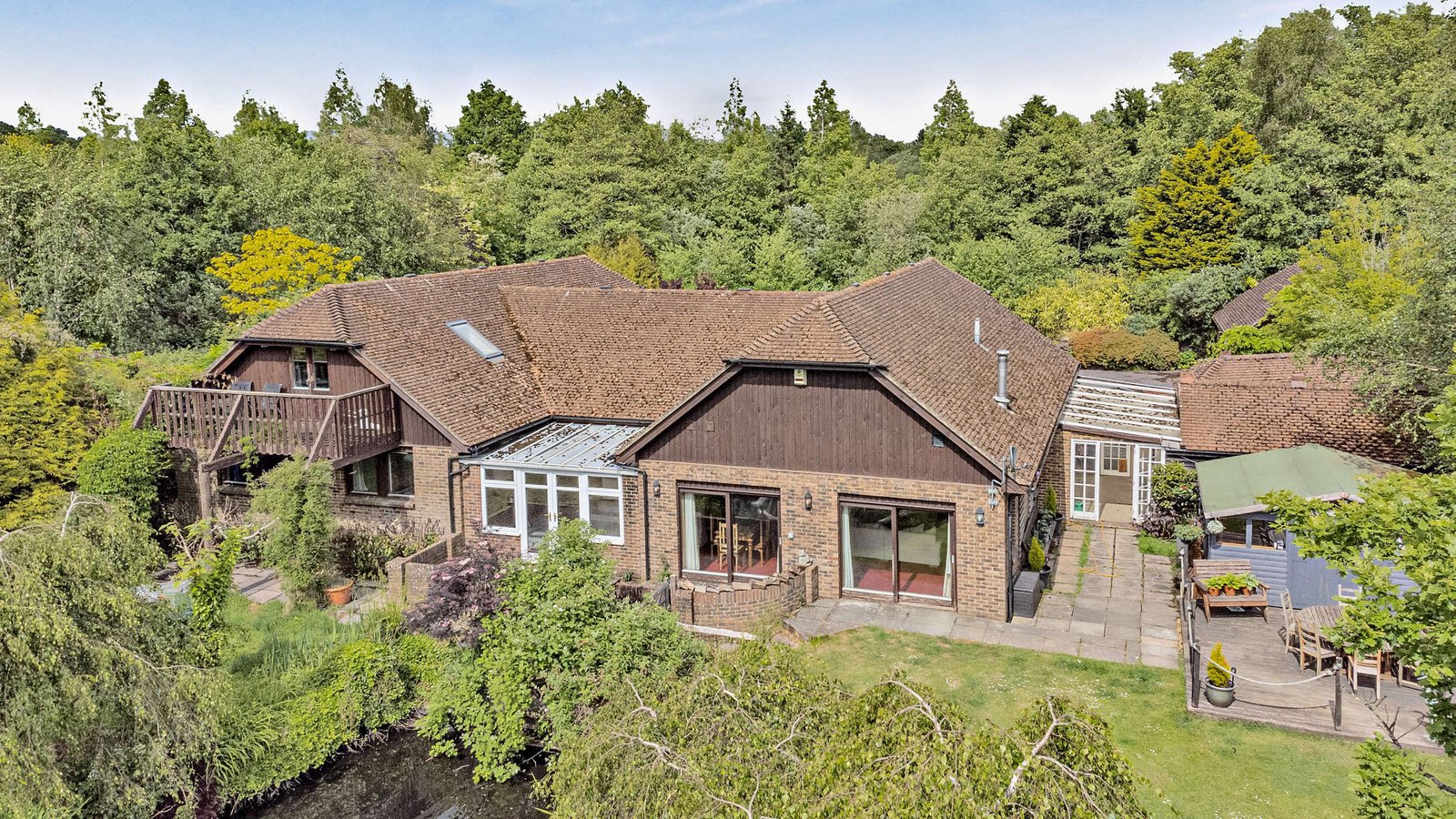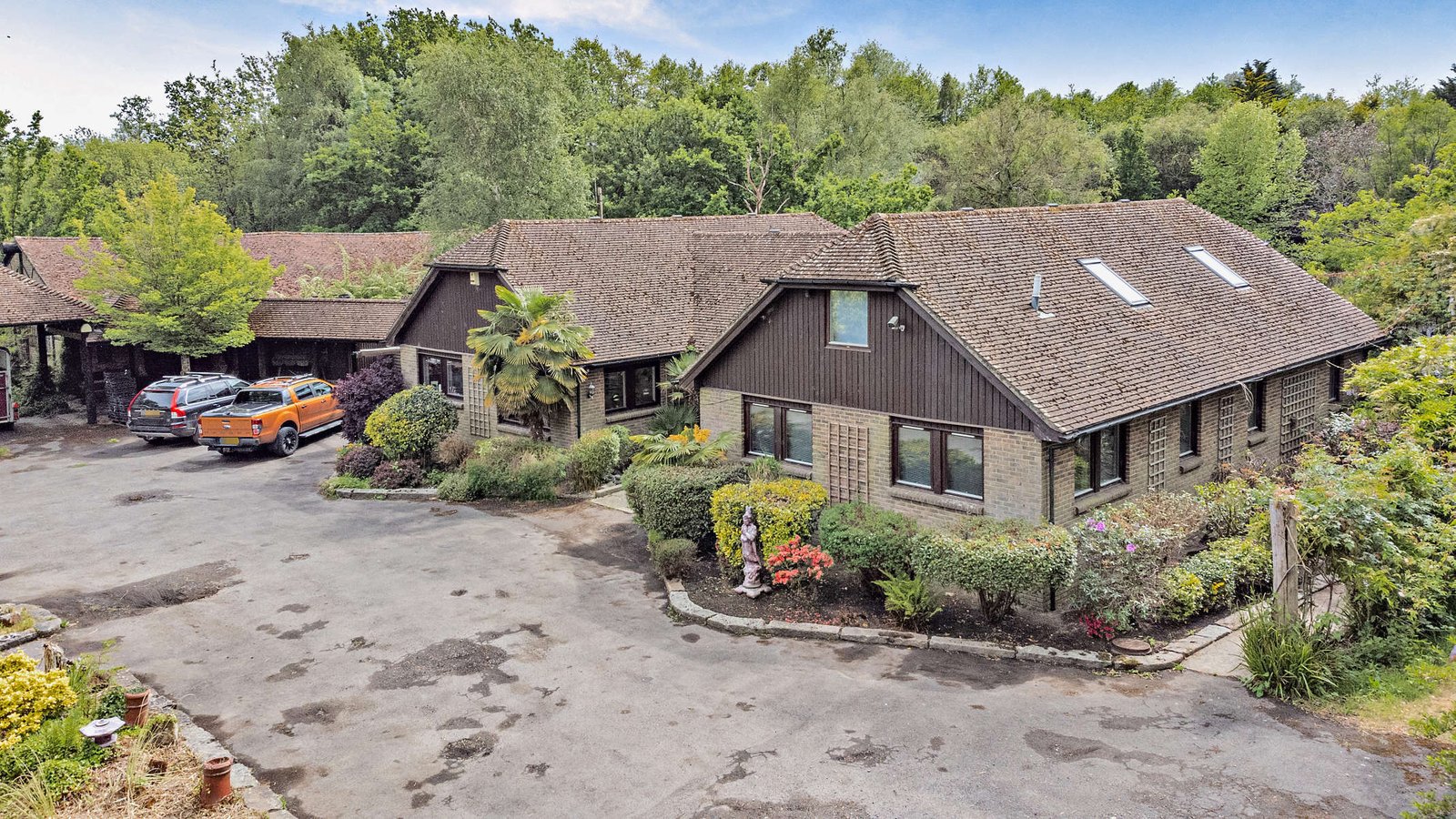 There is a large baronial-style barn built in 1991 of timber and brick construction under a tiled roof with a total floor area of 2,330sq ft, which can be used as an entertaining area and has potential for ancillary accommodation subject to planning.