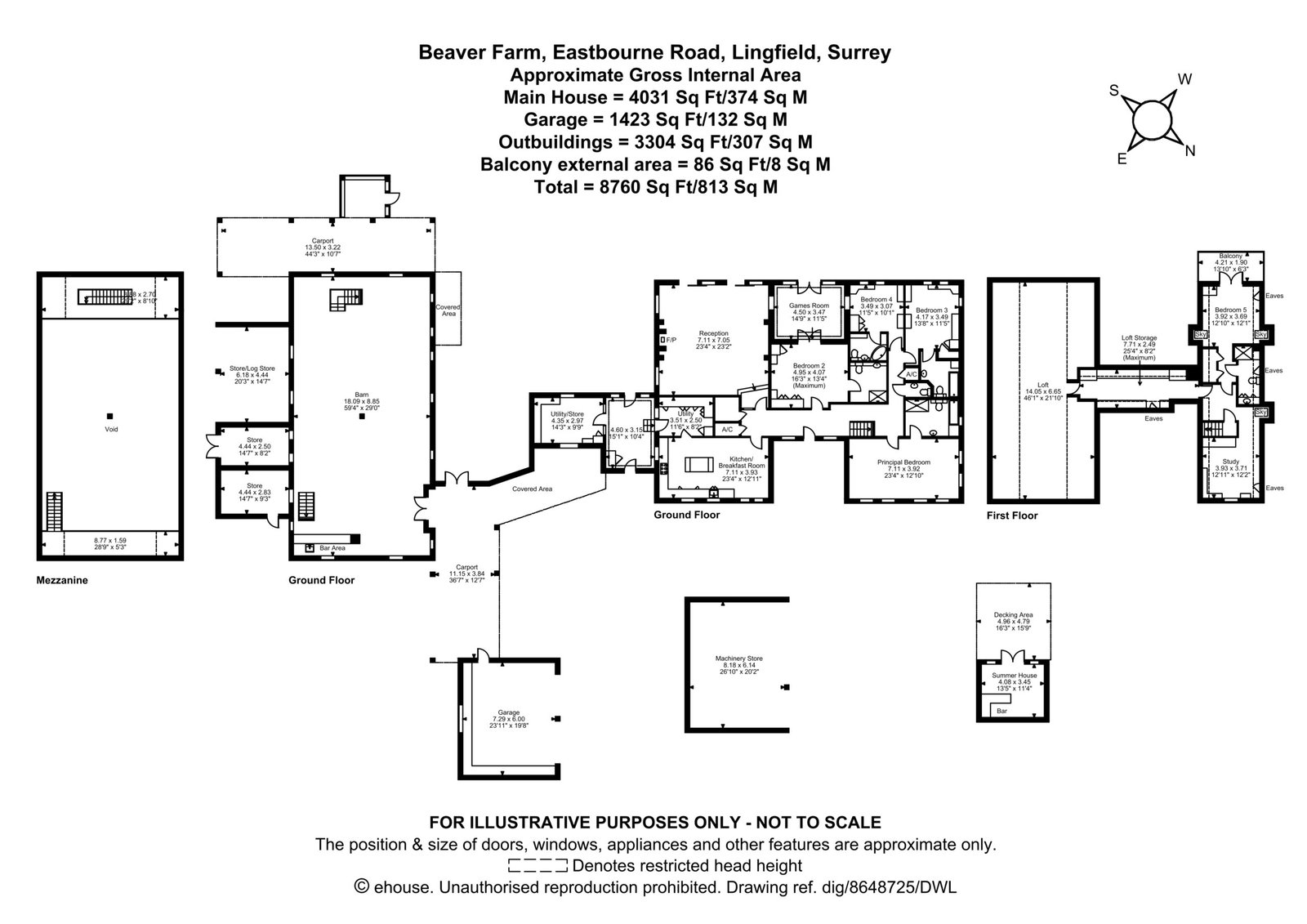 In addition there are further open sided timber and tiled storage areas and garages.