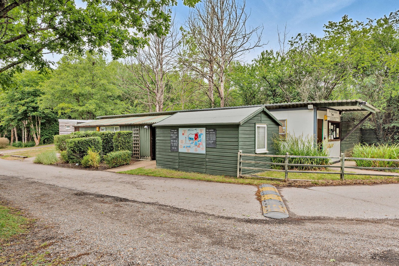 A single storey brick building of timber construction with steel profile sheeted roof and walls. Providing approximately 1200sq ft of utilisable area of which approximately two thirds are utilised as a tackle shop and one third as a fishery office and store room. Adjacent to the tackle shop is a lean-to used for general storage. Premium shower block with WCs.