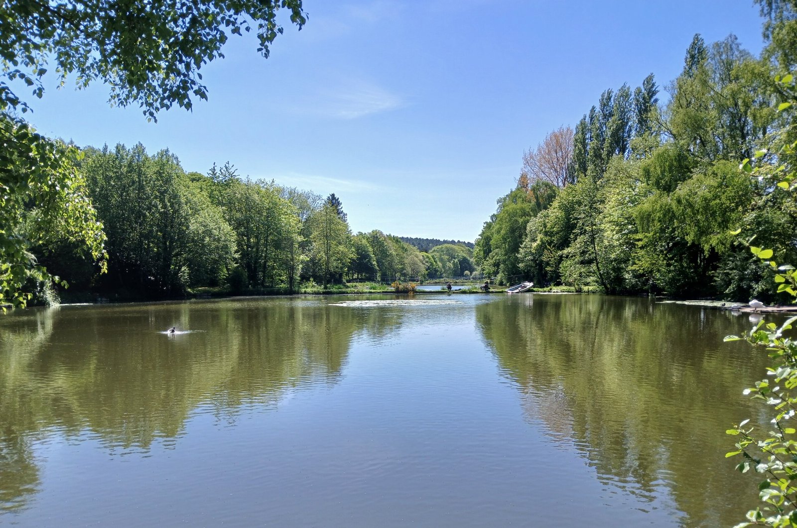 Pond no. 4 - extending to 0.86 acres, 15 pegs, with depths between 4-7ft. Stocked with carp up to 18lbs, perch, roach  bream, tench, barbel, chub, hybrids and gudgeon. Pond 4 was originally a stock pond and has two areas of water separated by a central bar.