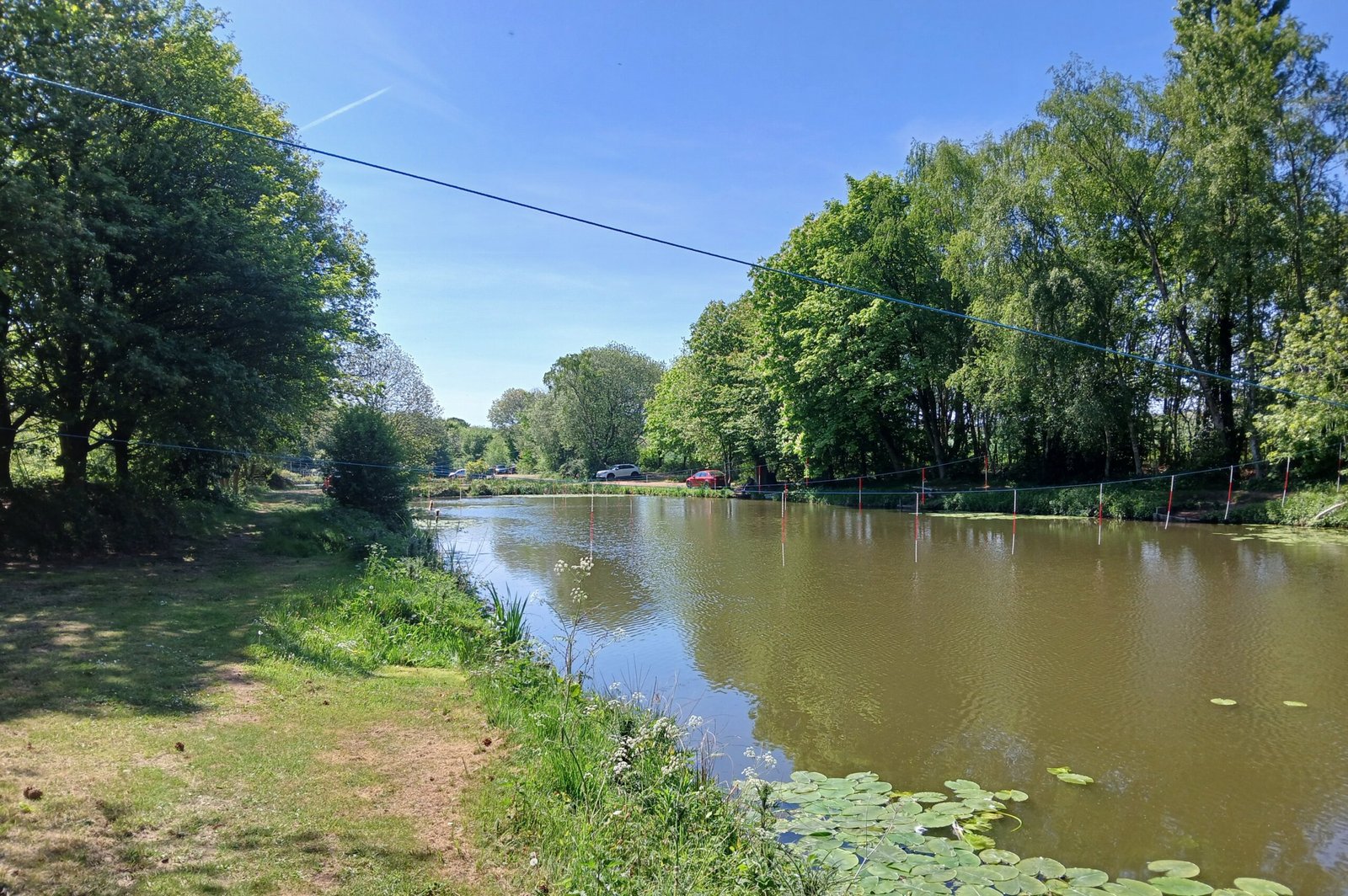 Polo Pond - extending to 0.9 acres, 15 pegs, with average depths of 5ft. Stocked with carp up to 21lbs, perch, roach, bream, tench, barbel, hybrids and crucian carp.