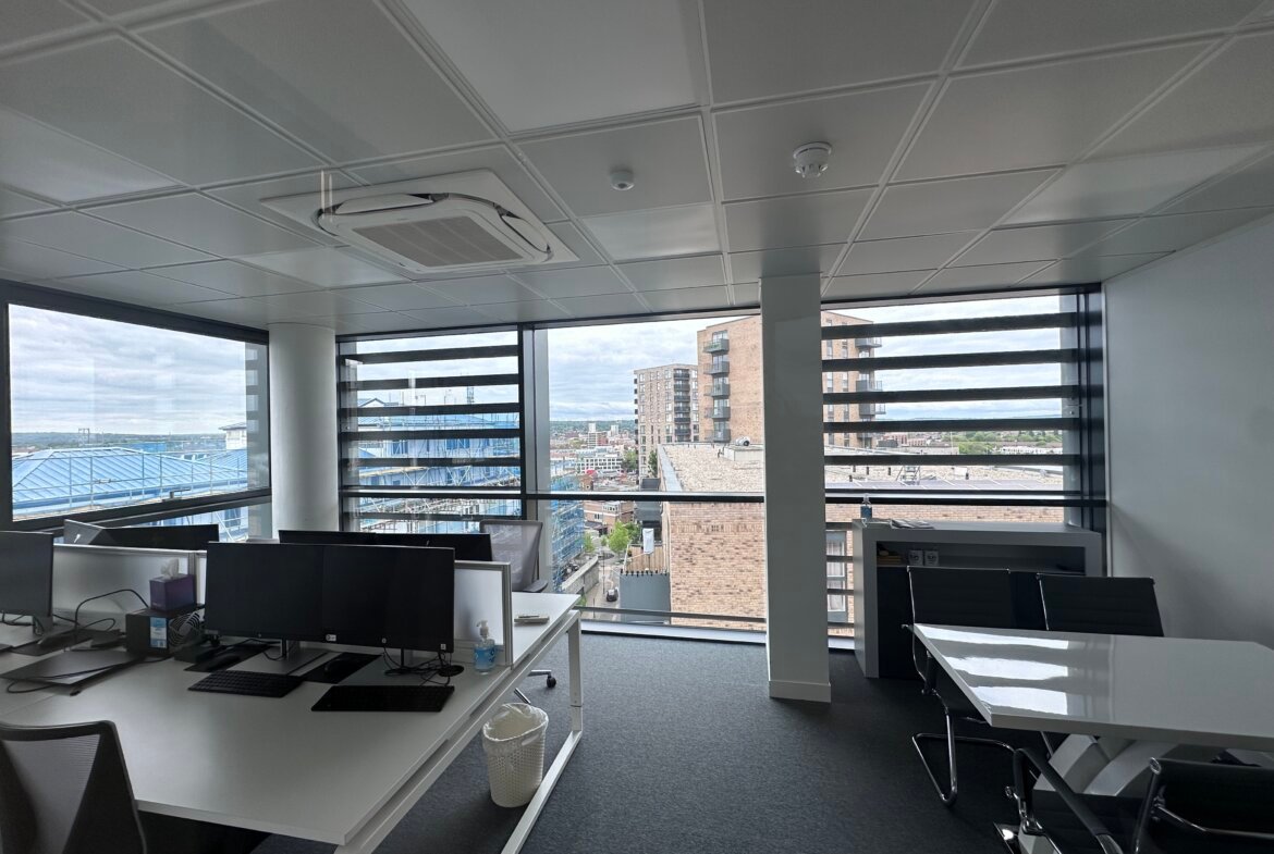 The entire penthouse floor of Bradburys Court in Central Harrow offers amazing office space with stunning London skyline views. The floor is arranged a 3 office suites, each of which is leased on flexible tenancy agreements producing a gross rent of £64,500 per annum.