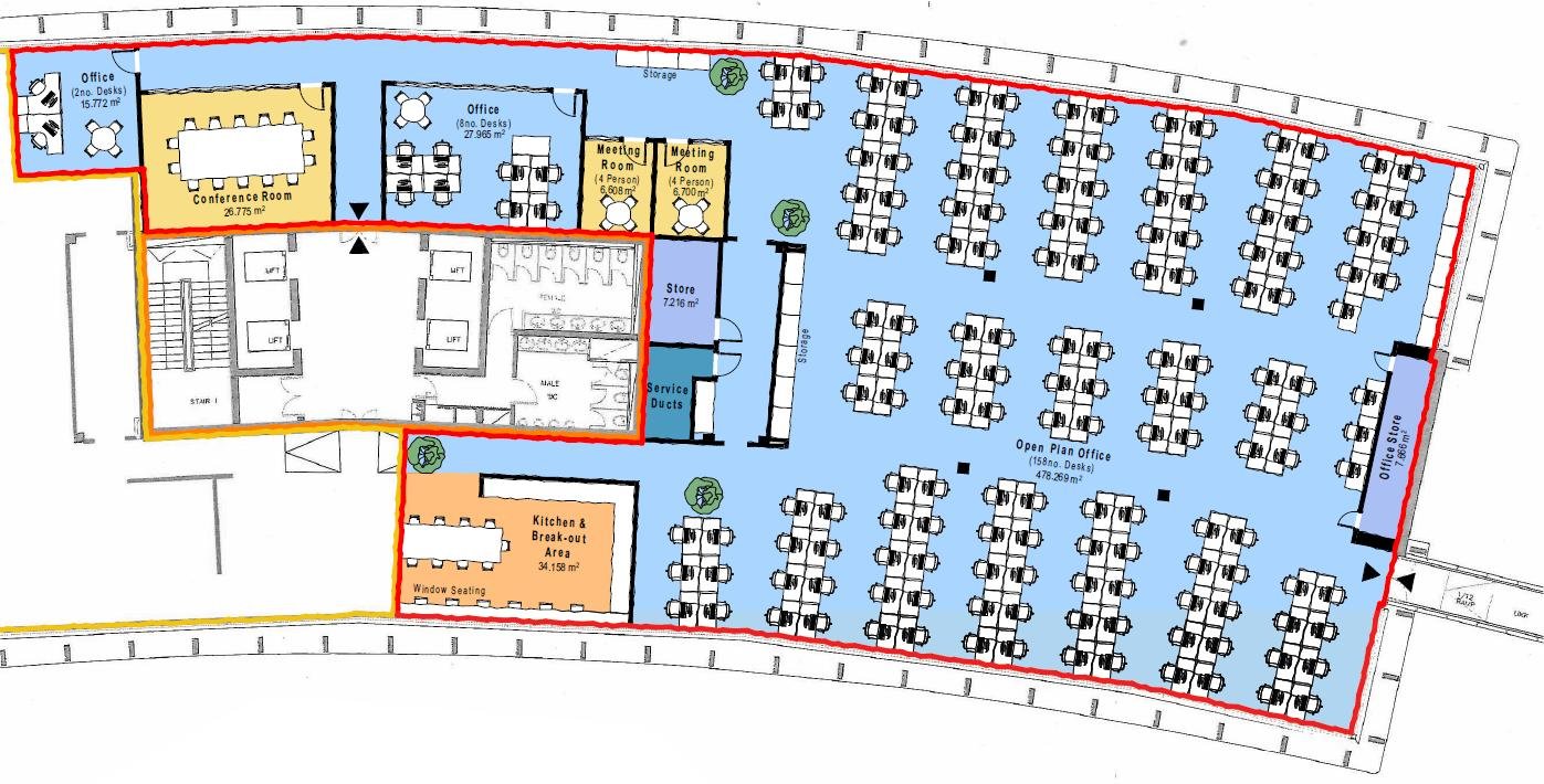 The premises provide an approximate net internal floor area of 8,891 sq ft (826 sq m) incorporating open plan main office, partitioned meeting rooms and kitchen/breakout area.