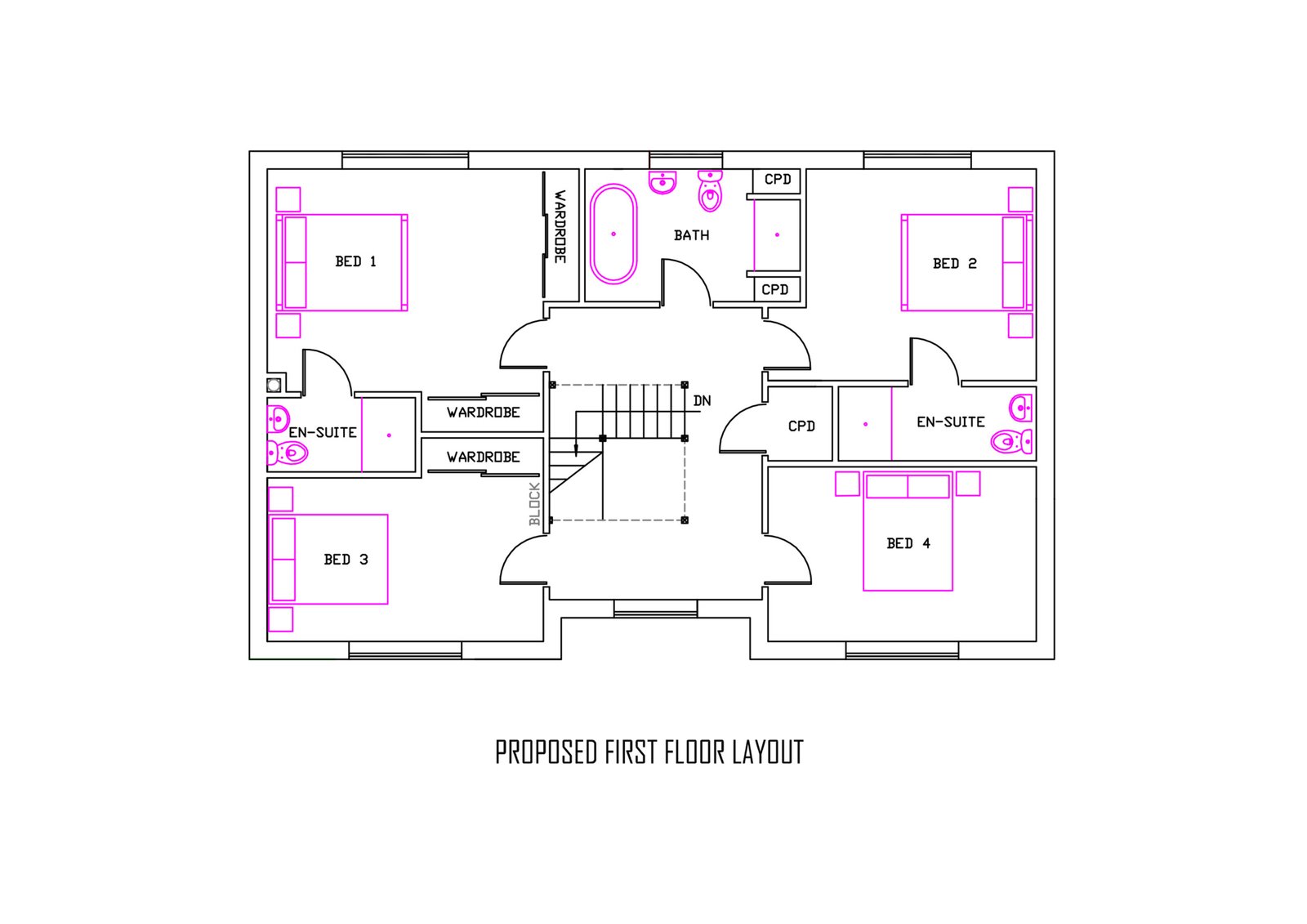A stunning 5 acre tree lined site which comprises of around 0.16 of an acre plot with an adjoining 4.84 acre grass paddock with mature trees and hedged boundaries. The proposed accommodation will extend to around 2,256 sq ft and offer a large open plan kitchen/Diner, lounge, snug, utility and entrance hall to the ground floor. The first floor will offer four double bedrooms, two en-suite bathrooms and a family bathroom. Outside will offer formal landscaped gardens, off street parking and a detached garage measuring 303 sq ft.