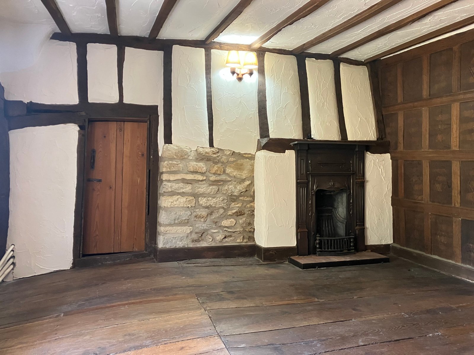 Sitting room, accessed from the Dining Room and Kitchen, with dual aspect views to the front of the property and over part of the garden, with large stone inglenook fireplace with exposed timber beams.