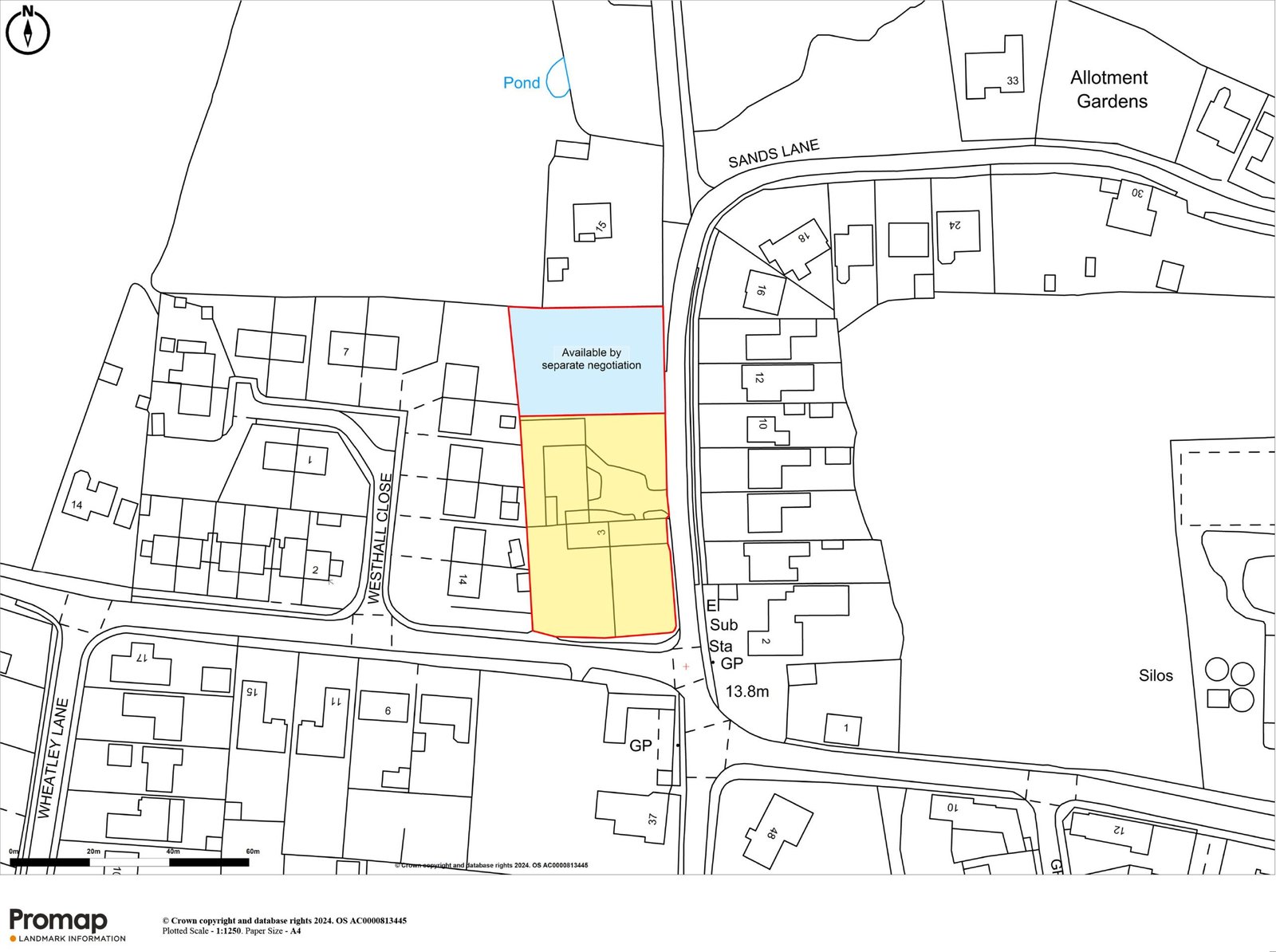 Land coloured blue on the plan is available by separate negotiation.