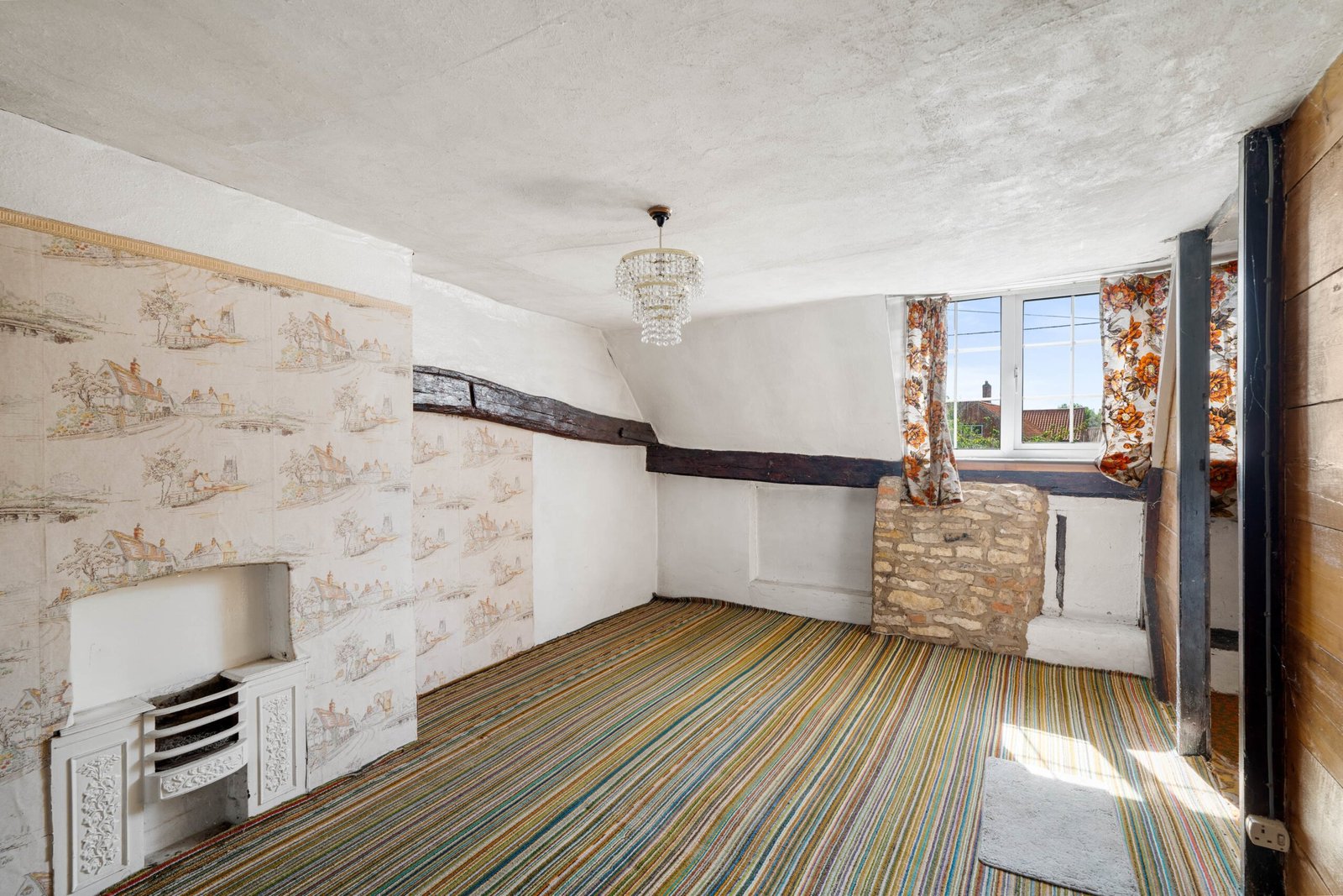 Double glazed window to rear, fireplace