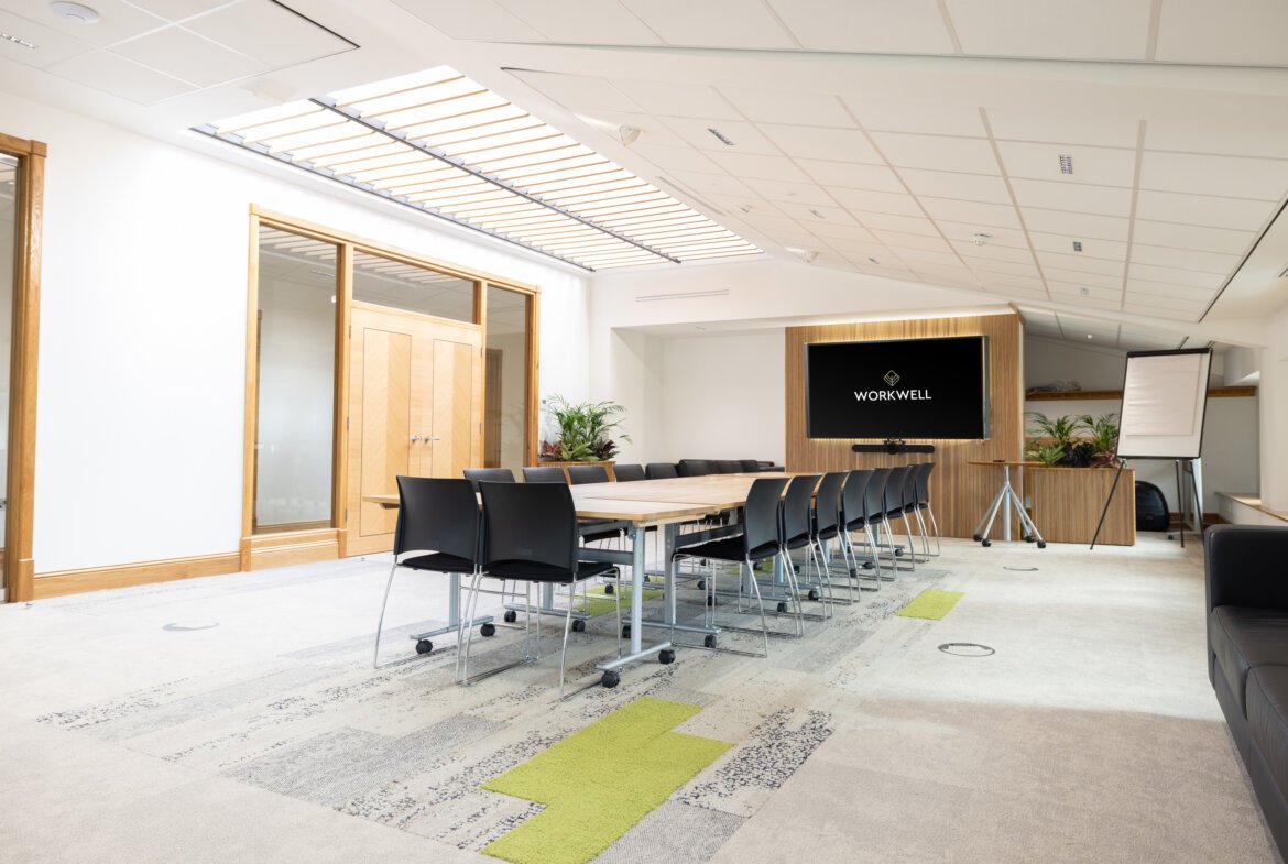 The property is surrounded by 110 acres of landscaped grounds and a private lake providing the office space with a rural appeal and multiple on-site walking routes. The office includes a range of meeting rooms capable to seat 6 people and a conference room capable of hosting 80 people. The office includes a management team available to provide a range of support services, a manned reception, providing a sense of security and the ability to receive professional IT support, printing, copying and refreshments.
