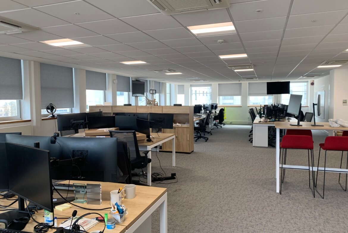 Churchill House provides high quality, city centre offices that have been refurbished to a high standard and including an impressive reception. The 3rd floor rear suite has been fitted to a high standard and benefit from suspended ceilings, recessed lighting, comfort cooling and perimeter trunking. The fit out of the space includes a number of meeting rooms, kitchen, reception area and circa 20 desk and chairs.