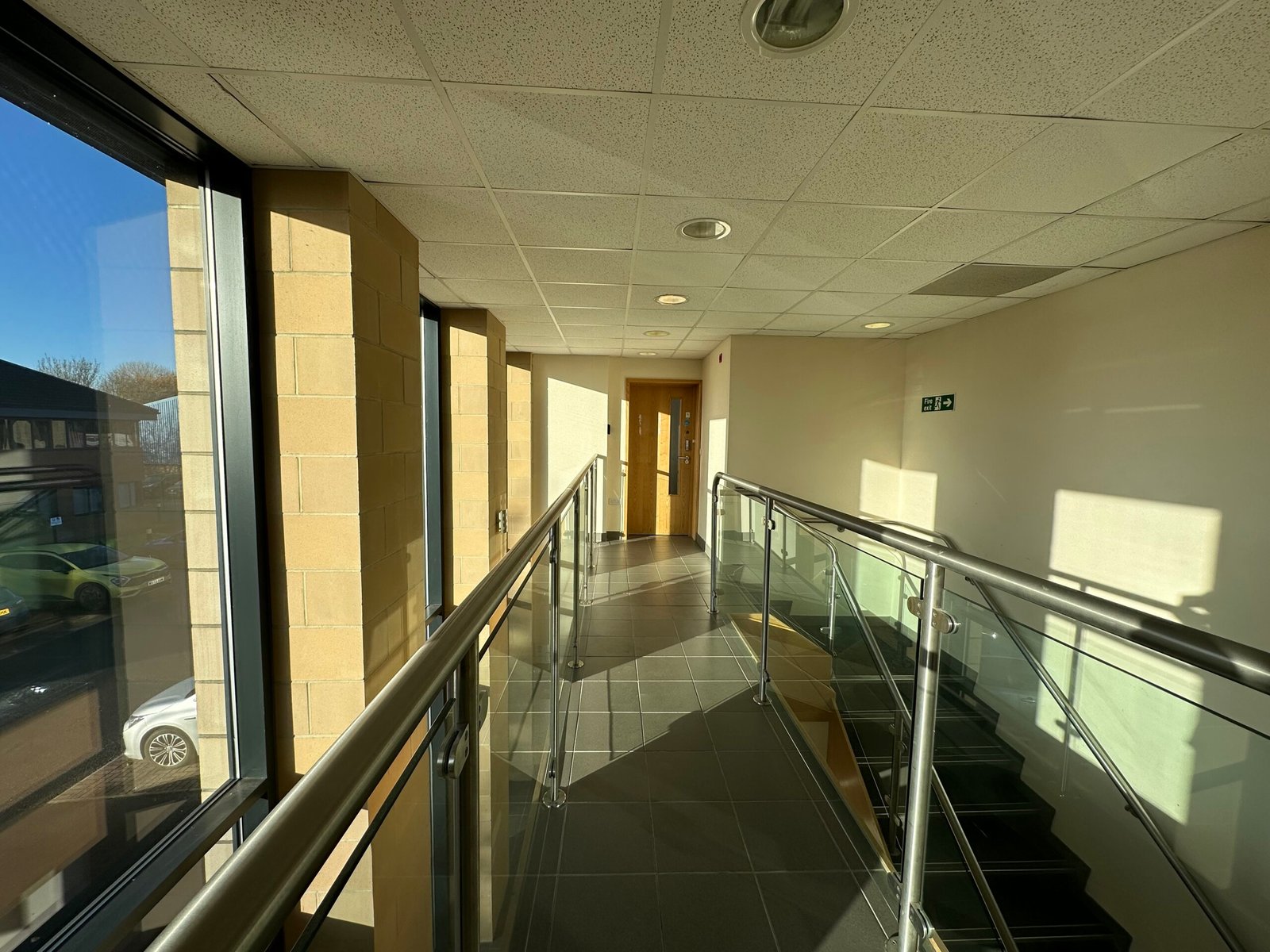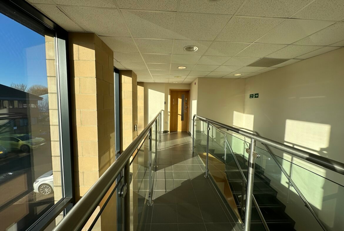 The building provides an attractive double height glazed attrium at the entrance providing access to the lift, stairwell and disabled WC.