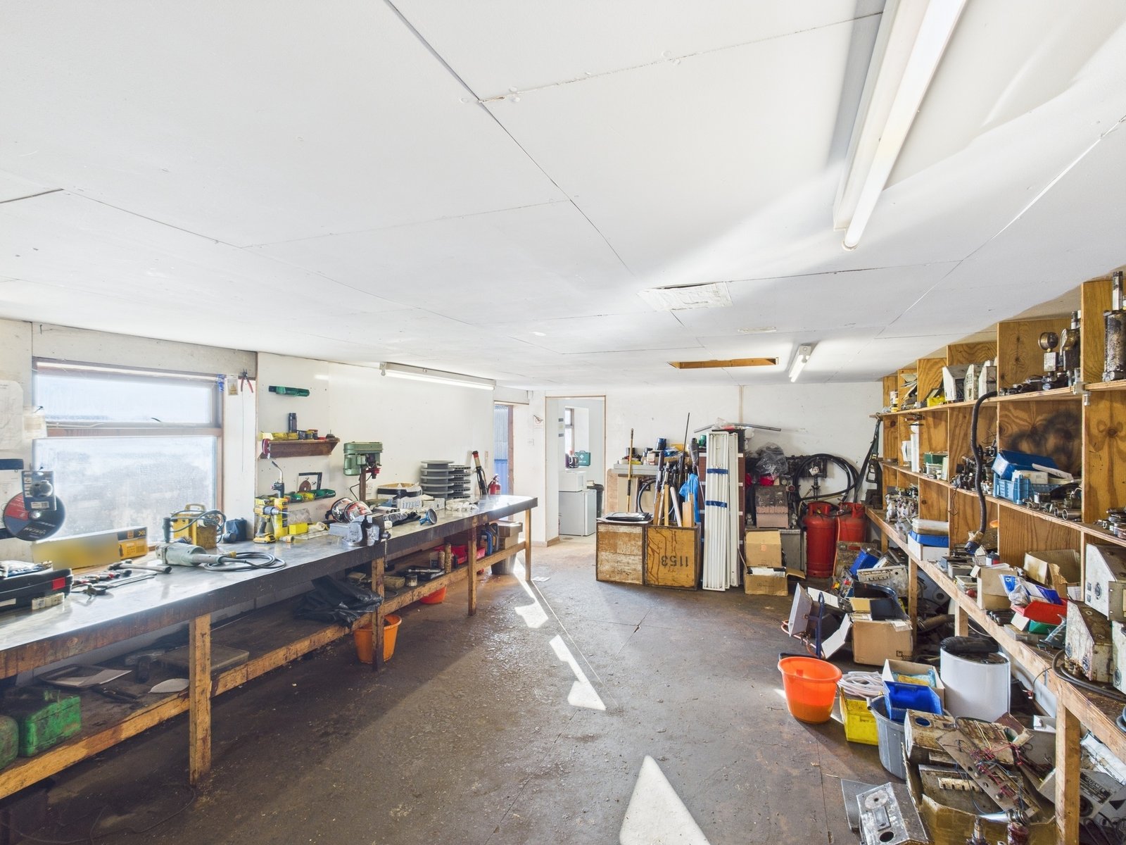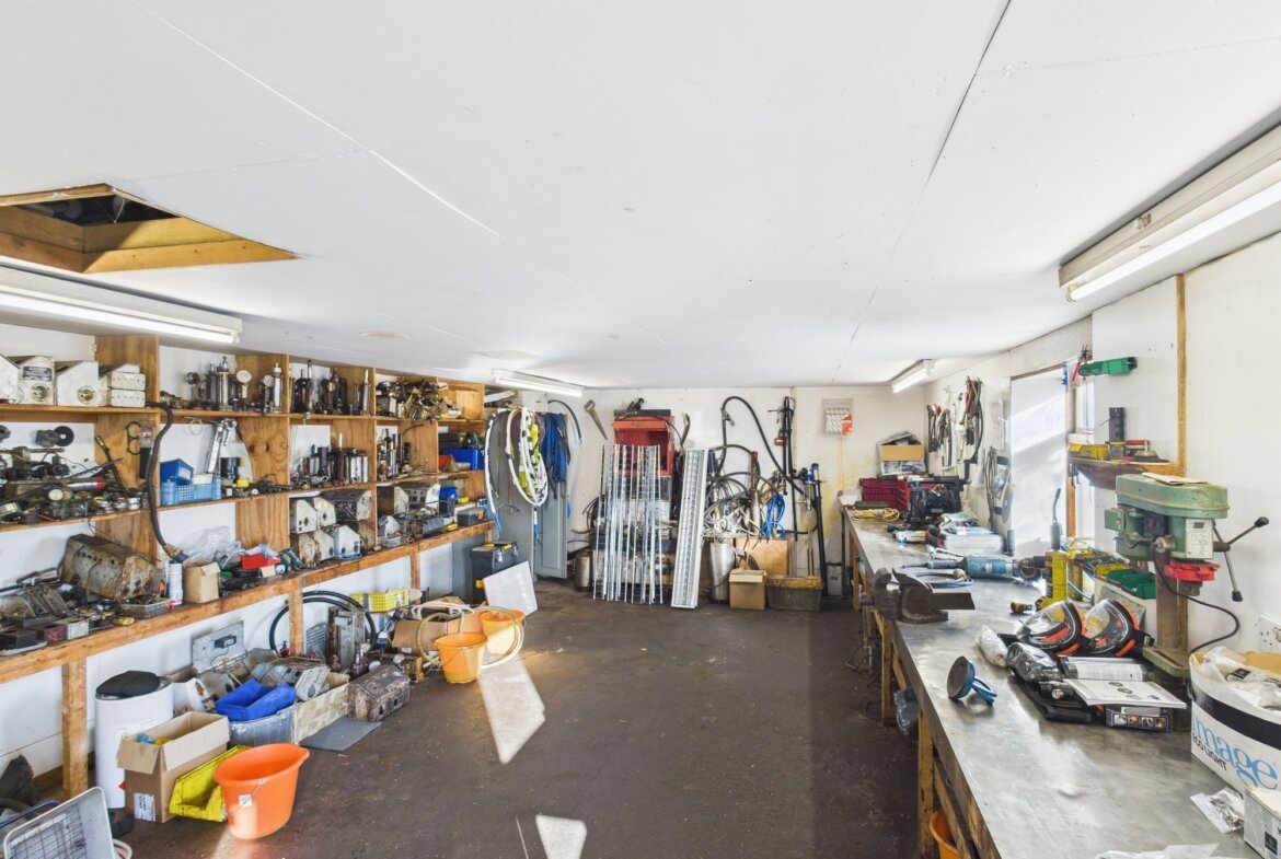 The warehouse with double access doors and workshops provides a range of open plan accommodation suitable for a variety of commercial uses.