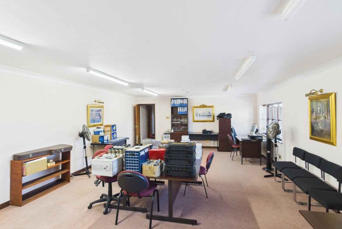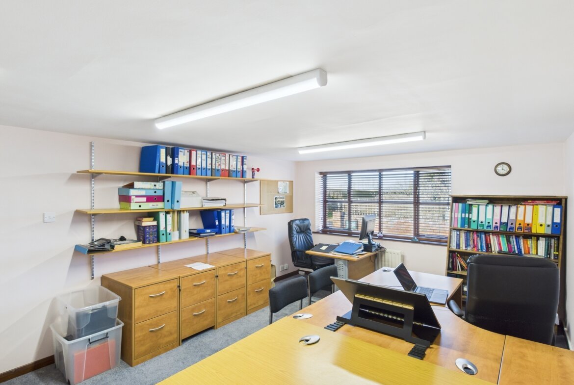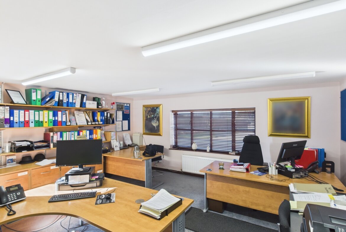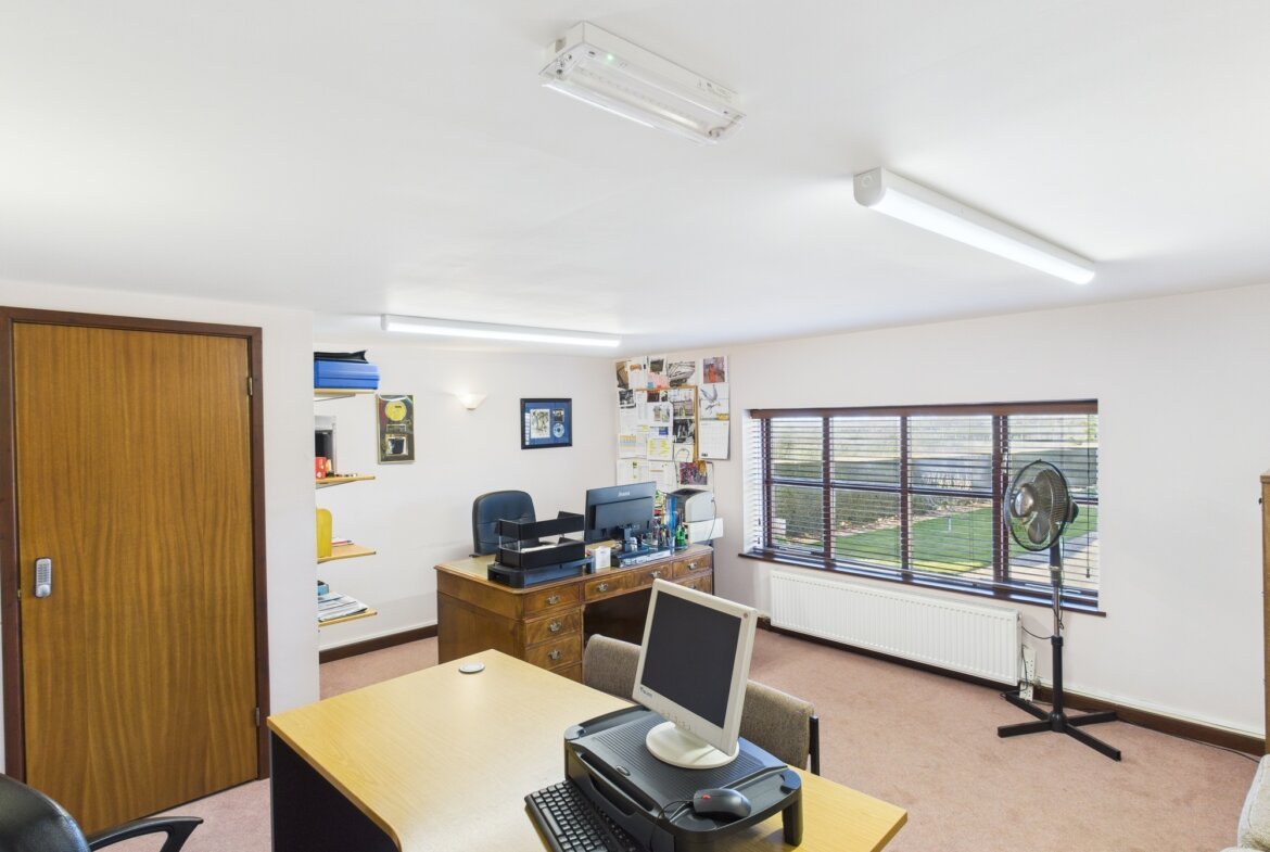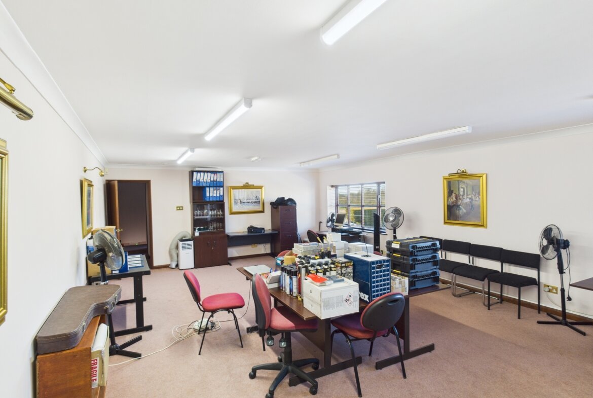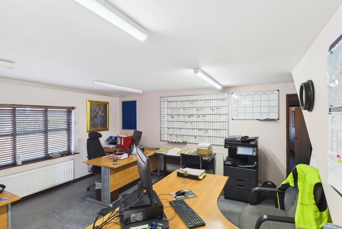 The main office building comprises a range of offices, meeting rooms, kitchens and WC with carpet, UPVC double glazed windows, data and telephone points, and central heating throughout.