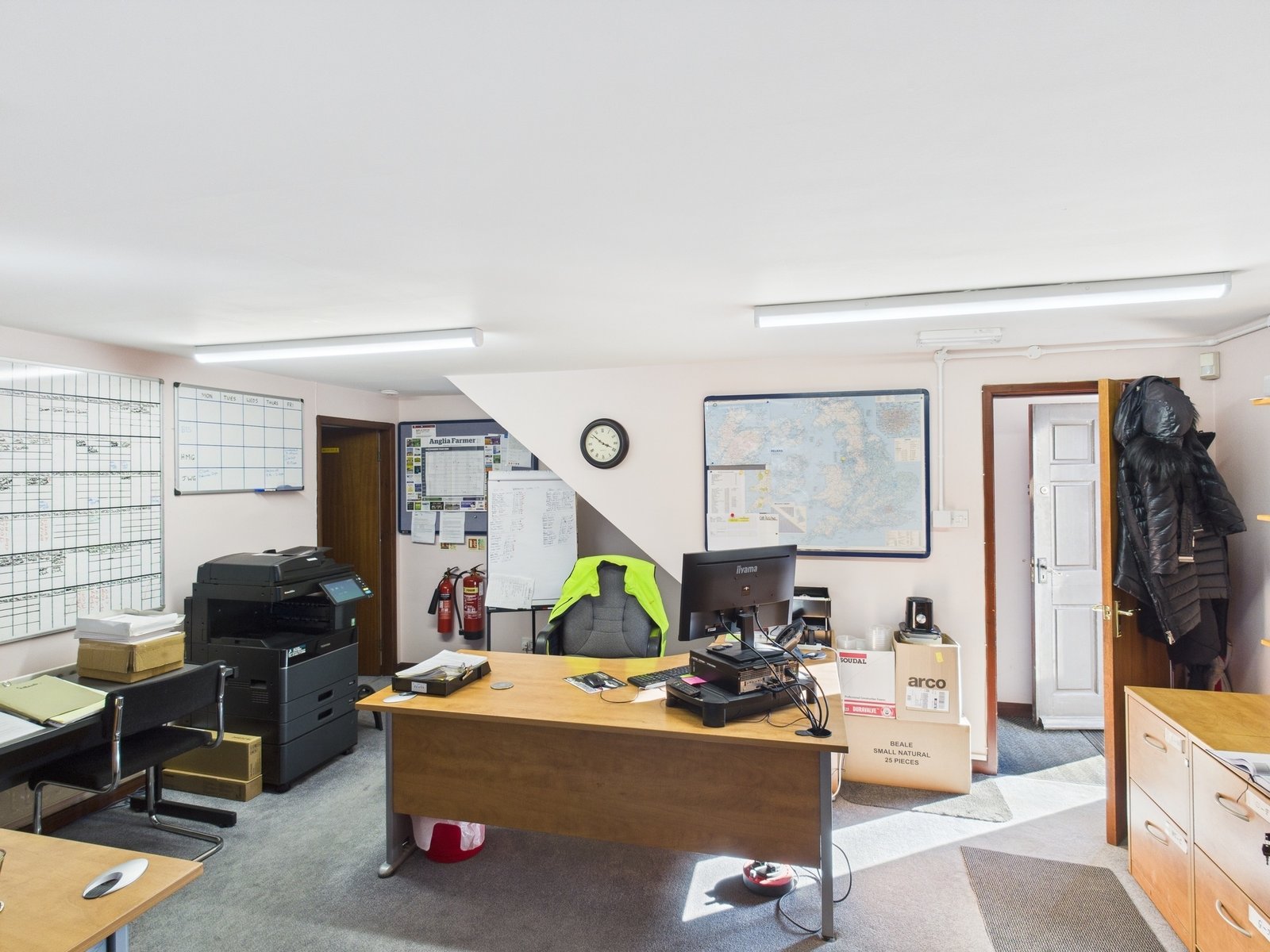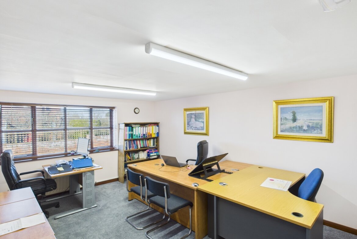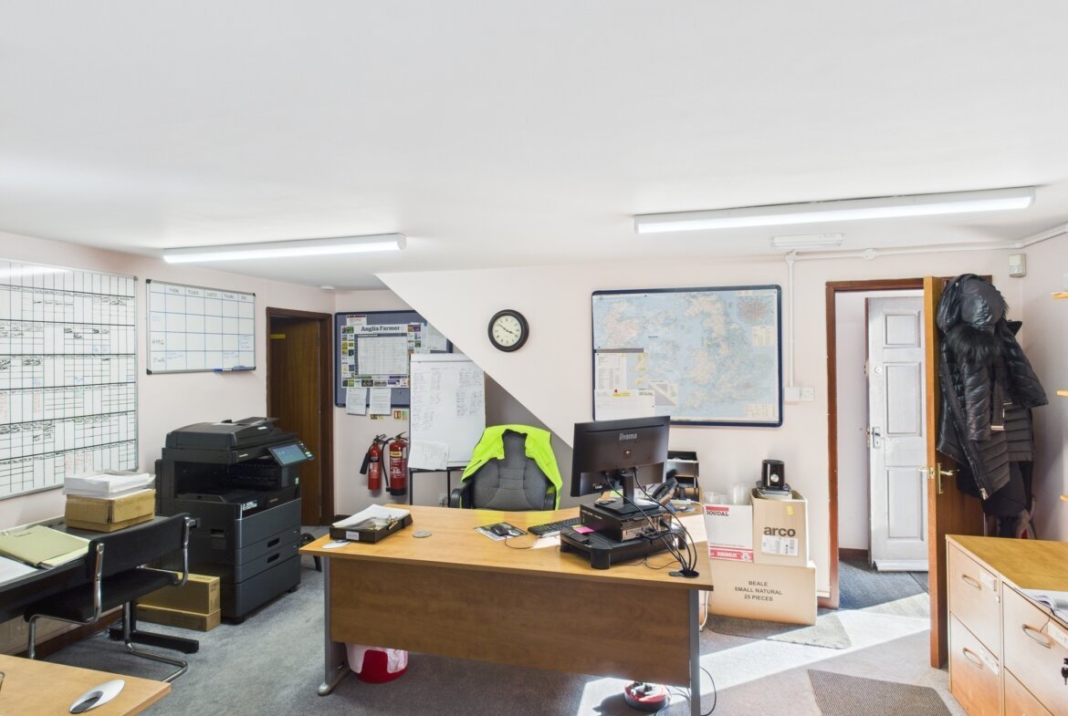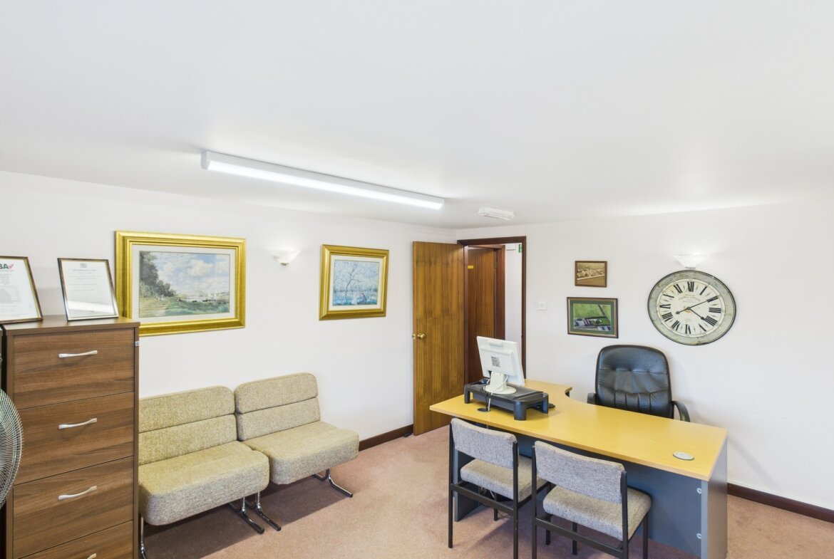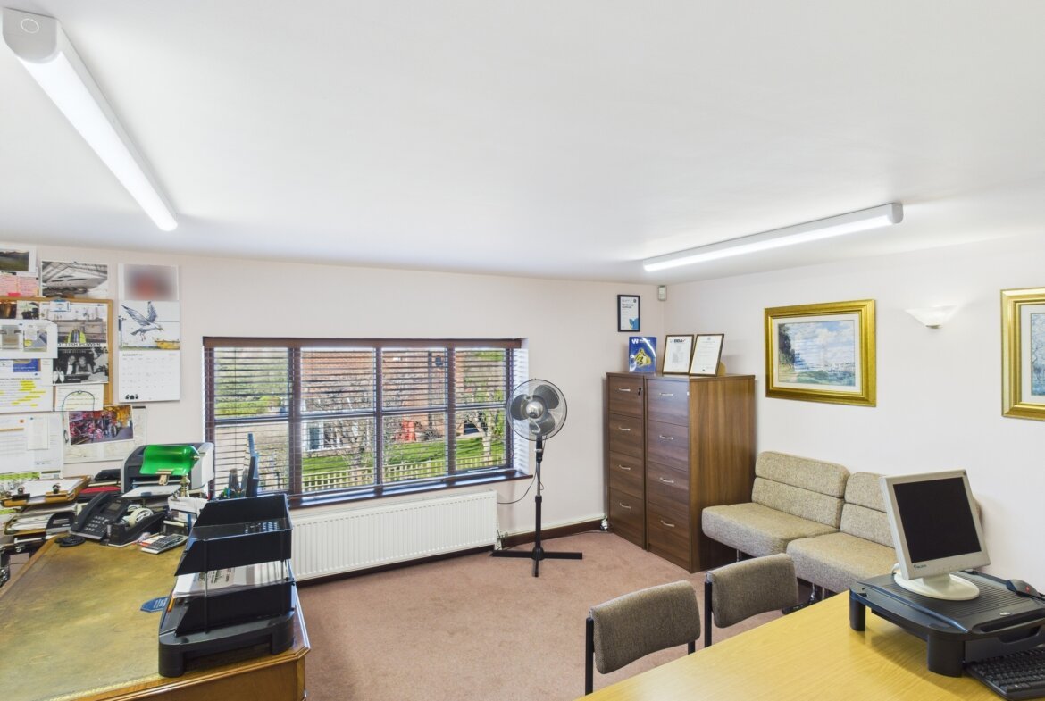 The main office building comprises a range of offices, meeting rooms, kitchens and WC with carpet, UPVC double glazed windows, data and telephone points, and central heating throughout.