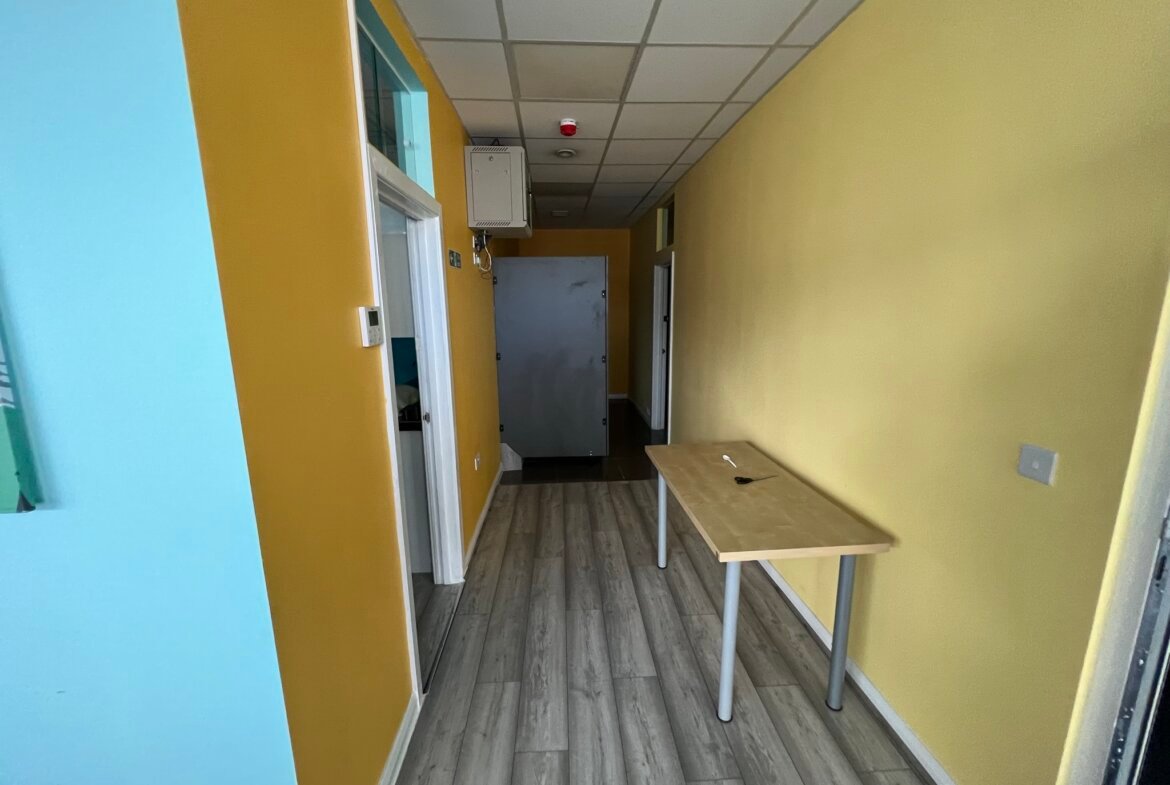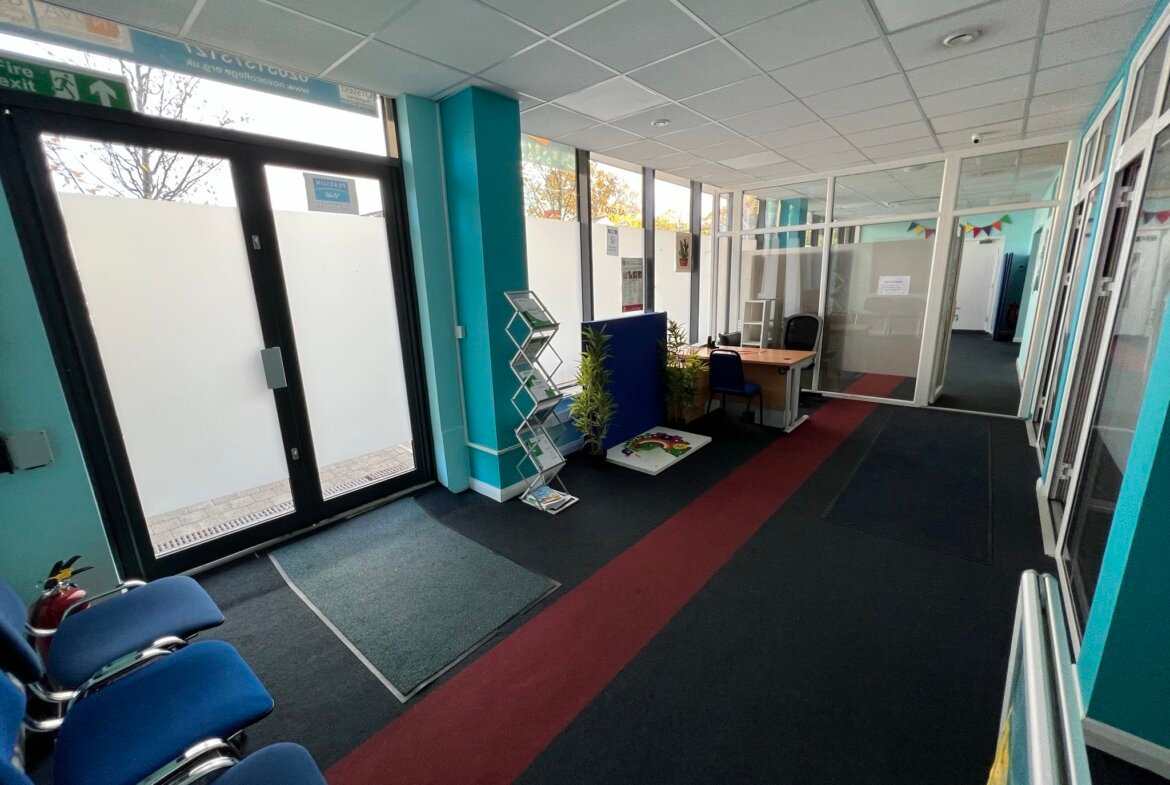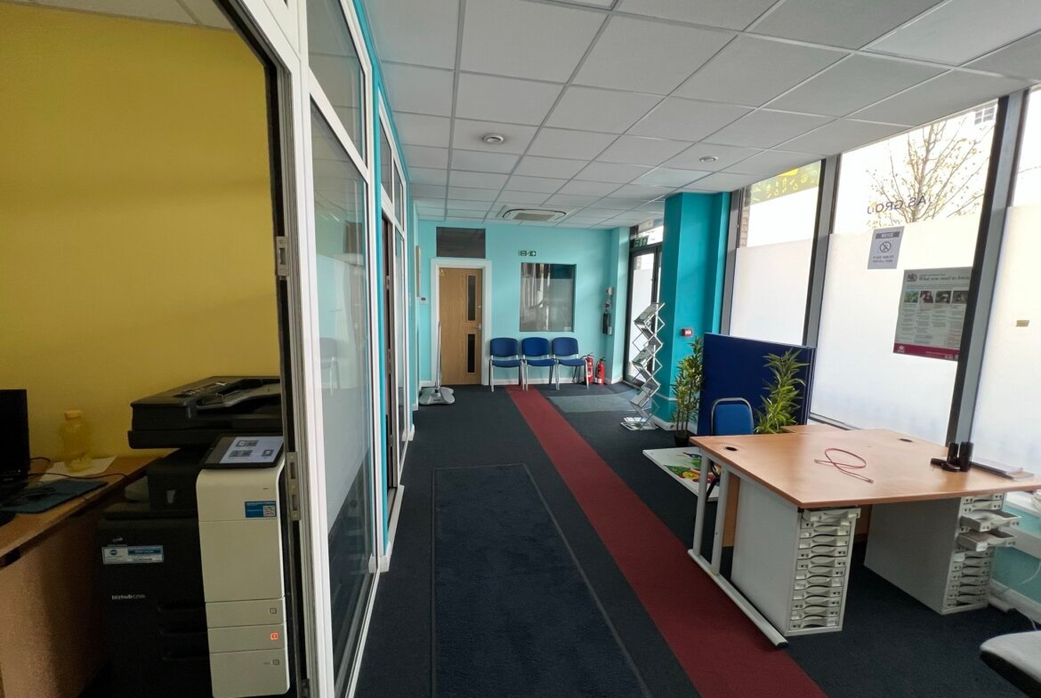 Ground floor suite forming part of an office block having a good frontage to Westmoreland Road with the benefit of two front doors. In addition, there is a further access via the block communal entrance hall. The property has been used as a college and is arranged as offices, classrooms, halls and stores. A well presented suite featuring two front entrances, secured access door, air conditioning for heating and cooling, shutter and CCTV throughout. One dedicated parking space is included and there is street parking.