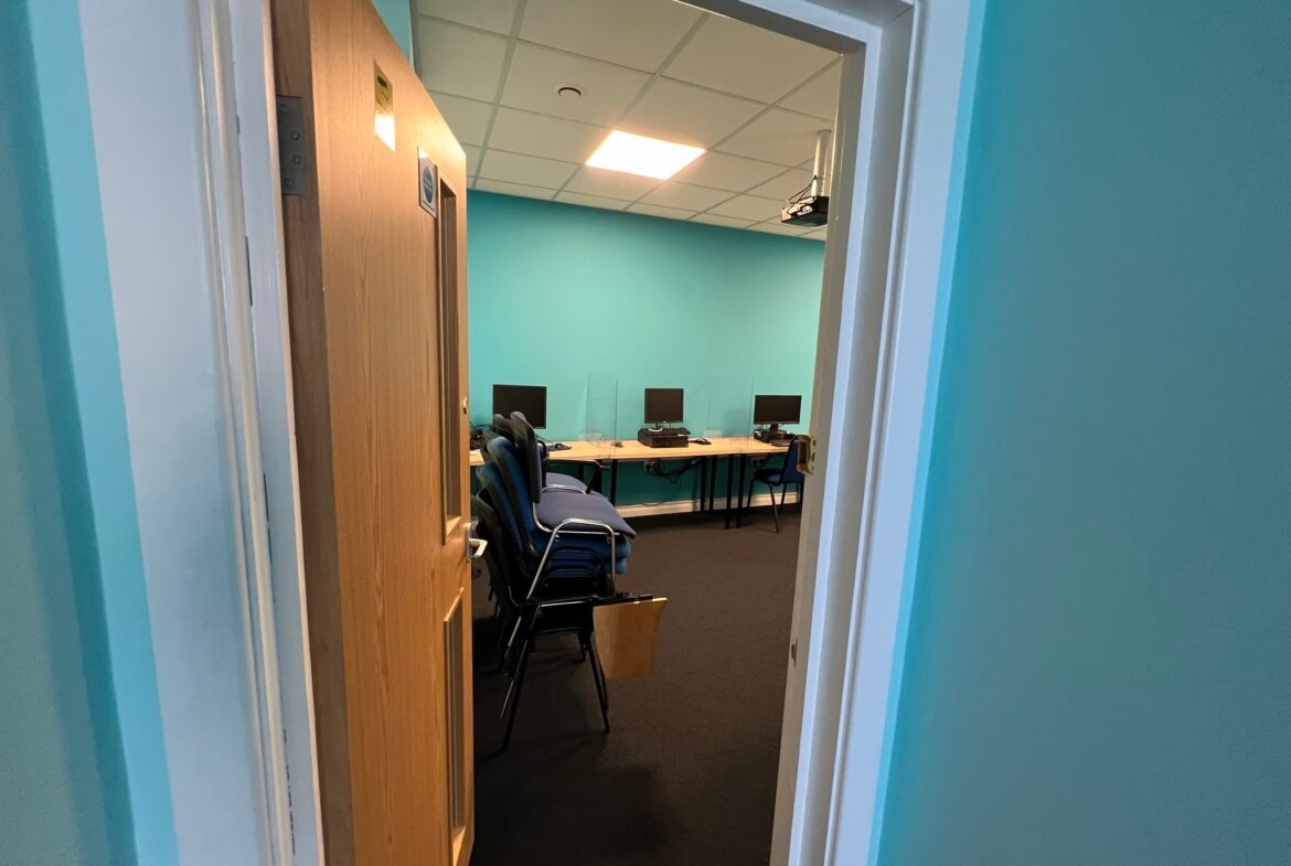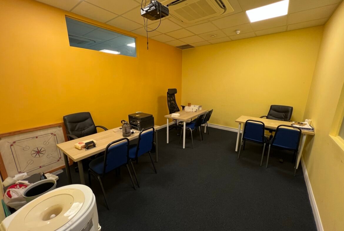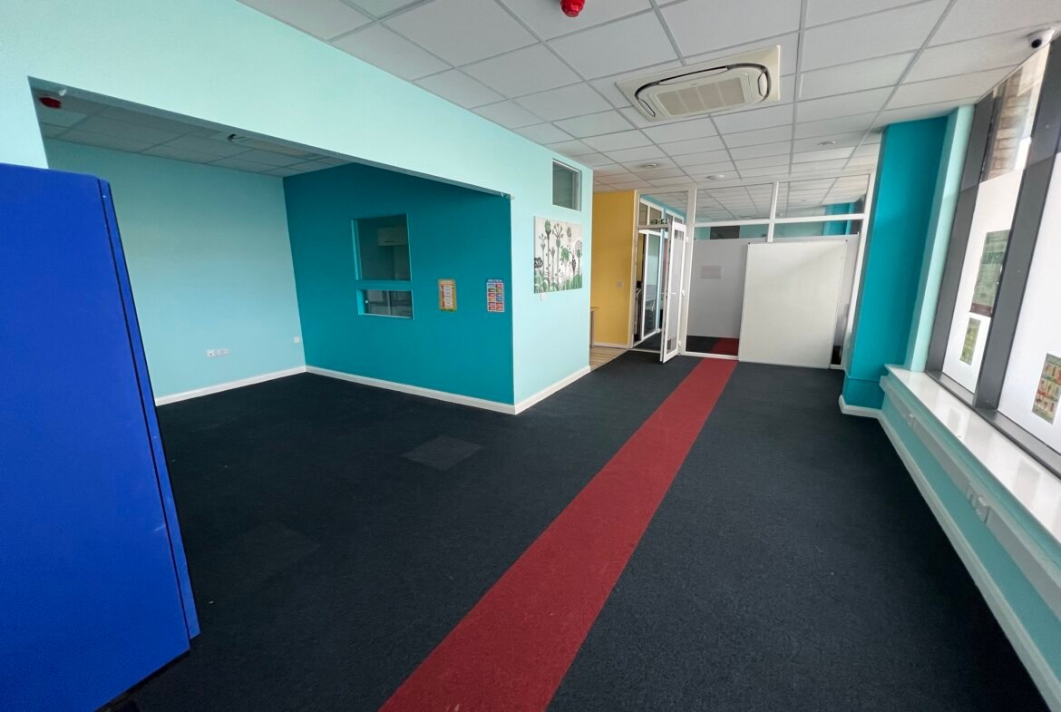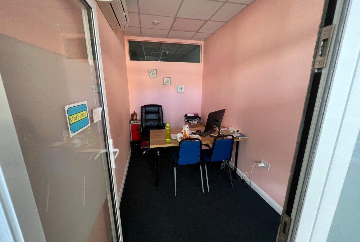 Ground floor suite forming part of an office block having a good frontage to Westmoreland Road with the benefit of two front doors. In addition, there is a further access via the block communal entrance hall. The property has been used as a college and is arranged as offices, classrooms, halls and stores. A well presented suite featuring two front entrances, secured access door, air conditioning for heating and cooling, shutter and CCTV throughout. One dedicated parking space is included and there is street parking.