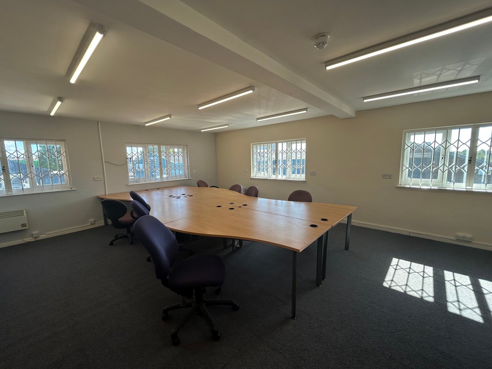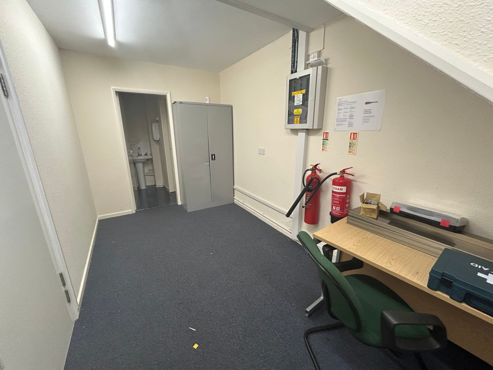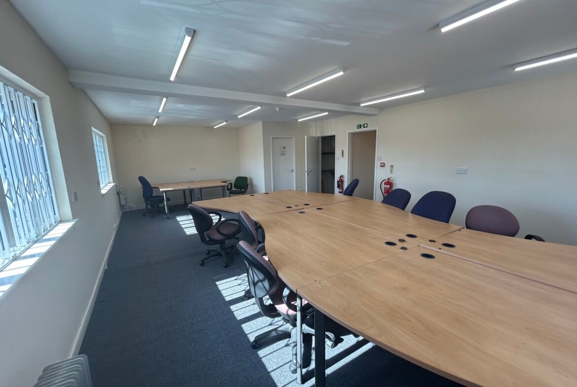 A two-storey 1960s office building comprising open plan ground and first floor offices with lobby, store, kitchen and WCs. The offices benefit from LED lighting, UPVC windows, carpet flooring, data trunking and electric heating to first floor with WCs on each floor. Tenant investment includes increased three phase power supply, air conditioning (ground floor), enhanced IT infrastructure, CCTV, integrated alarm system, security doors, roller shutter windows and retractable security gates.