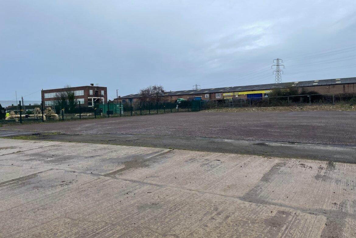 This Industrial Outdoor Storage (IOS) property measures 6.92 acres in total and benefits from a mixture of surfaces including concrete. Plots are available from 2.75 acres.