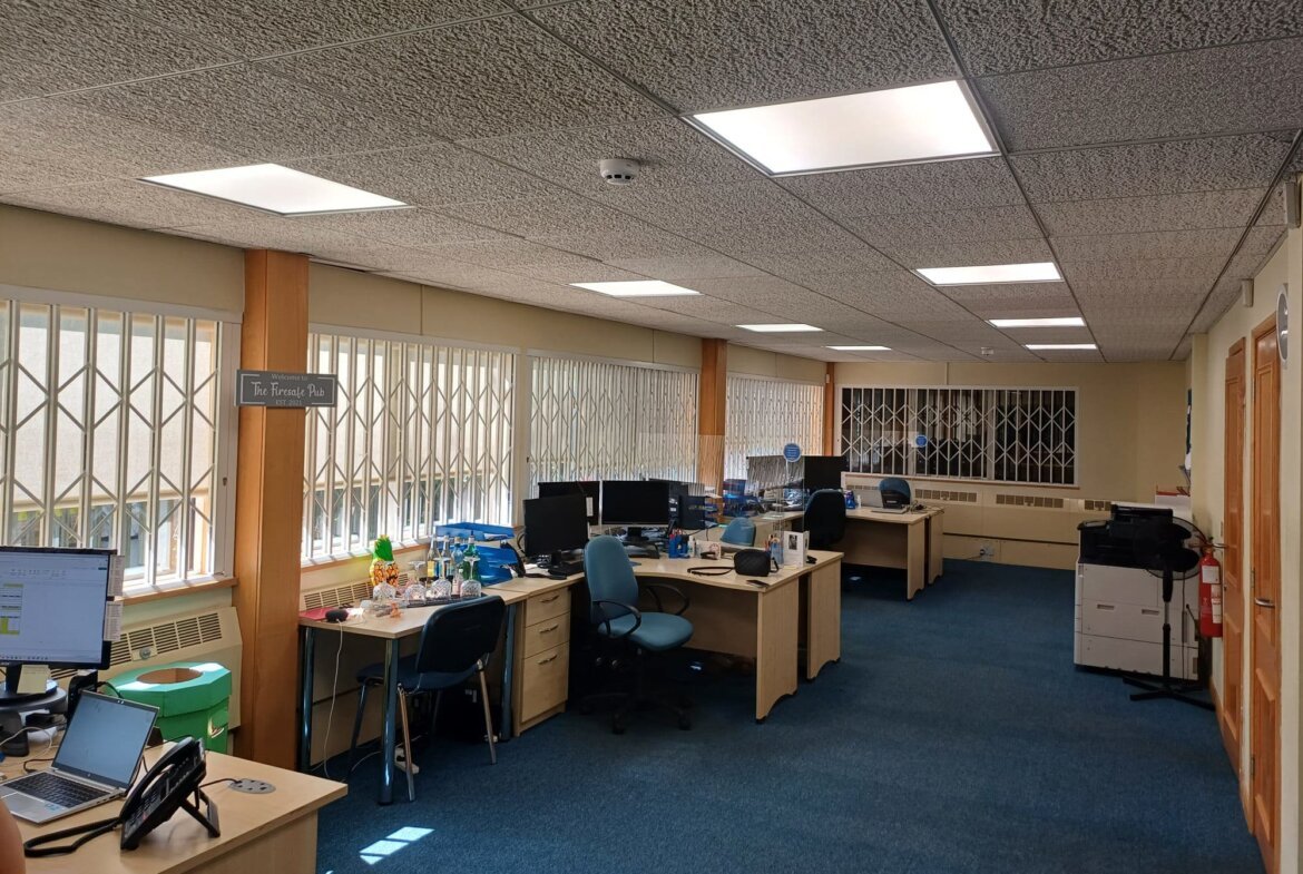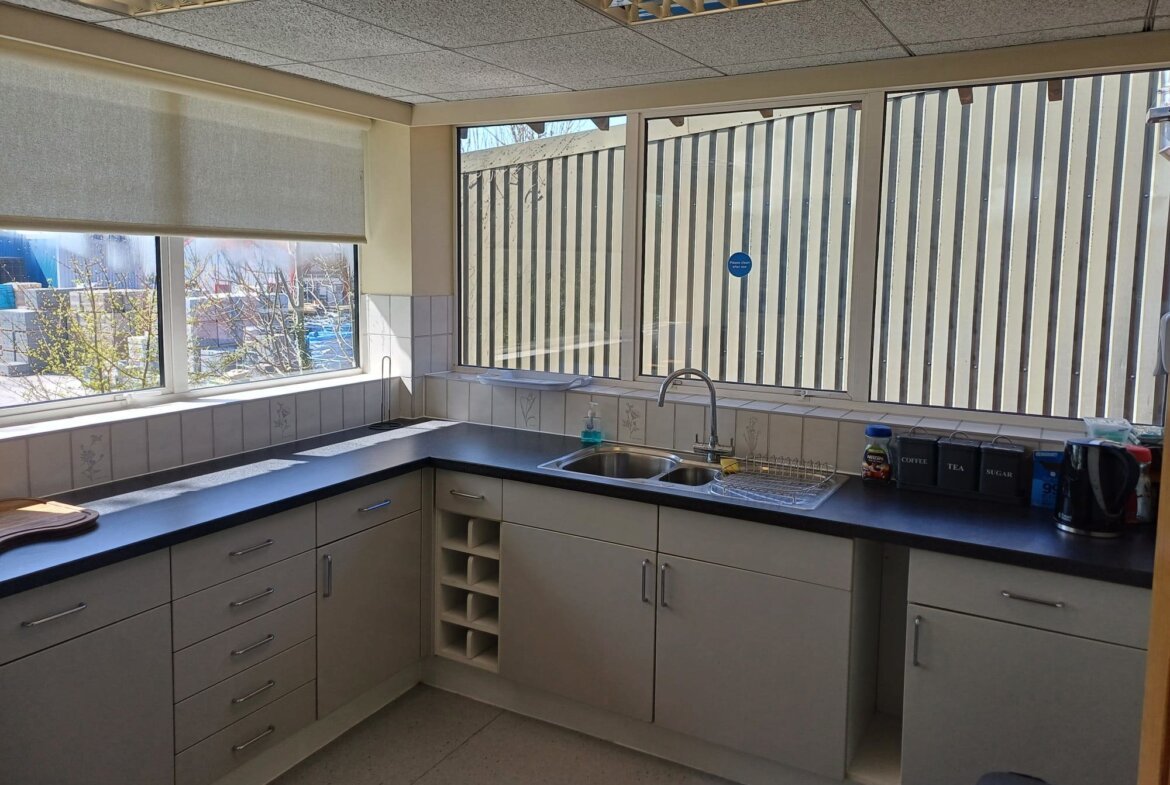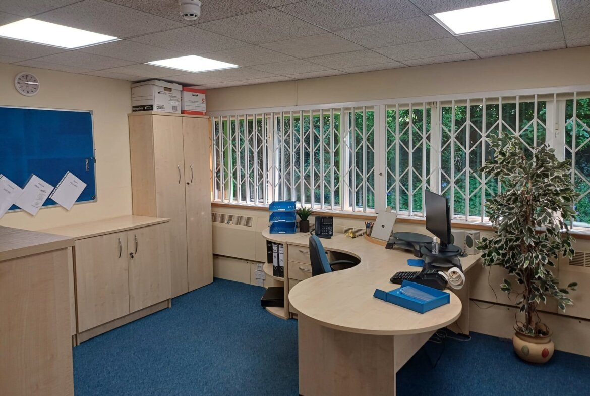 The property is set out over two floors and is positioned on its own self-contained site with secure palisade fencing. It is of standard construction with brick elevations under a pitched slate roof. Internally, the property benefits from an open plan reception area with a feature spiral staircase to the first floor office accommodation. The current office provides for part cellular and part open plan office accommodation. There are kitchens and WC's at both ground and first floor. Heating provided via a biomass boiler.