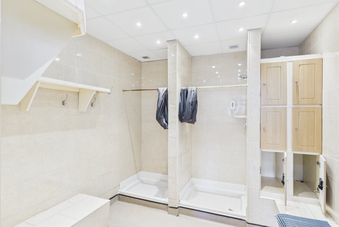 Internal layout on the first floor includes reception area with flexible open plan space, kitchen facilities and changing rooms with showers and WC's.