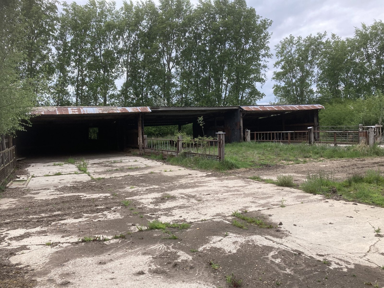 Pole Barn (8.90m x 25.00m) – Timber pole construction, open to one side under a corrugated tin roof with part concrete floor.