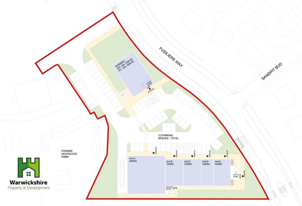 The property is located on Fusiliers Way, Warwick, a new link road through a new build housing development. Developers include Redrow, Bovis, Avant, Platform and Linden homes. In total there are approximately 1980 residential units either built or under construction.