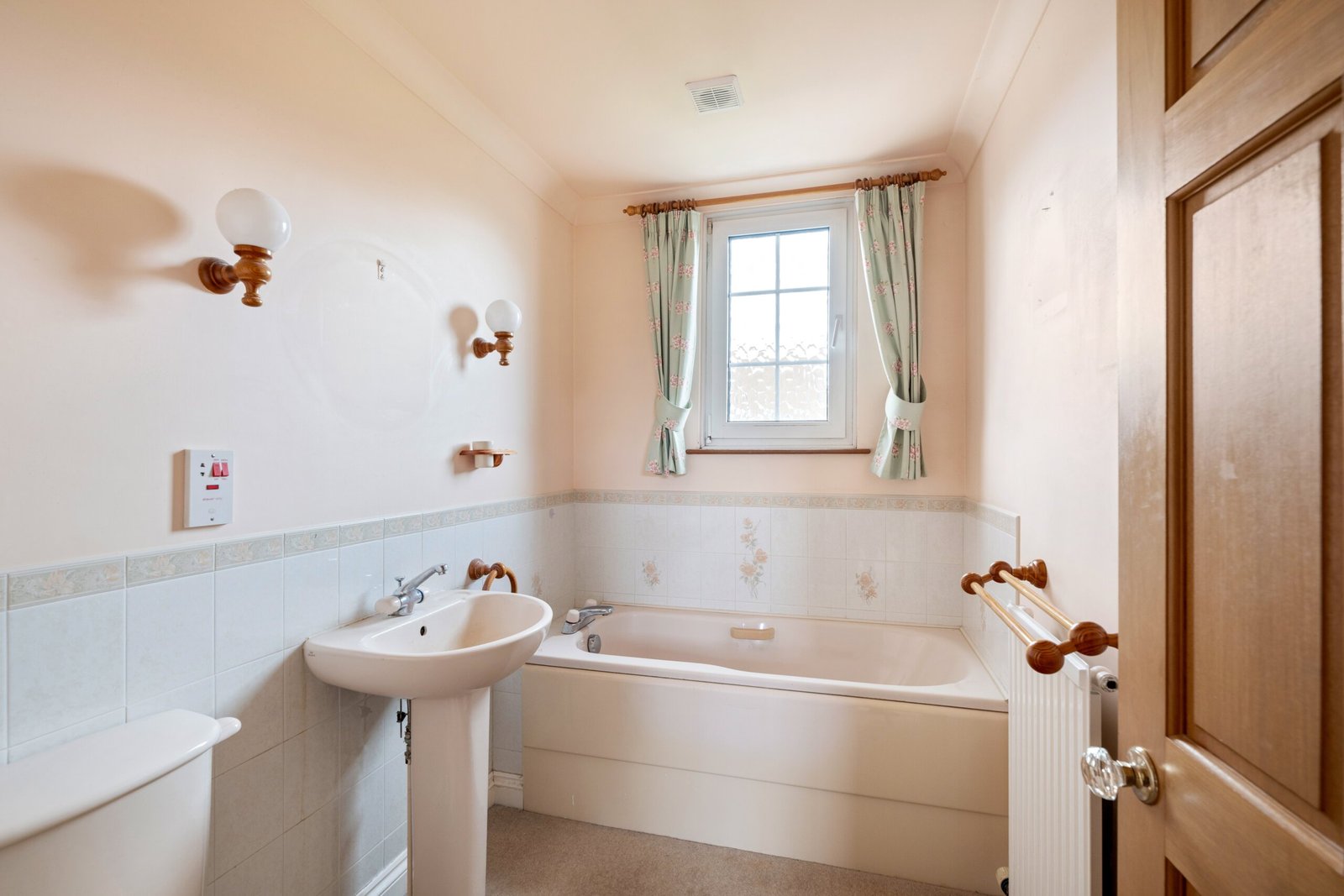 Double glazed window to rear, WC, pedestal wash basin, bath, radiator.