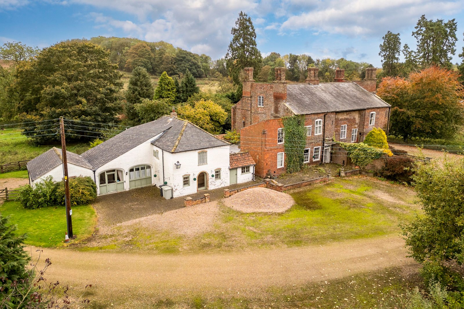 The Estate comprises a substantial Grade II listed hall, Five cottages, a range of farm buildings and around 63.62 acres (25.73 hectares) of land and woodland.
