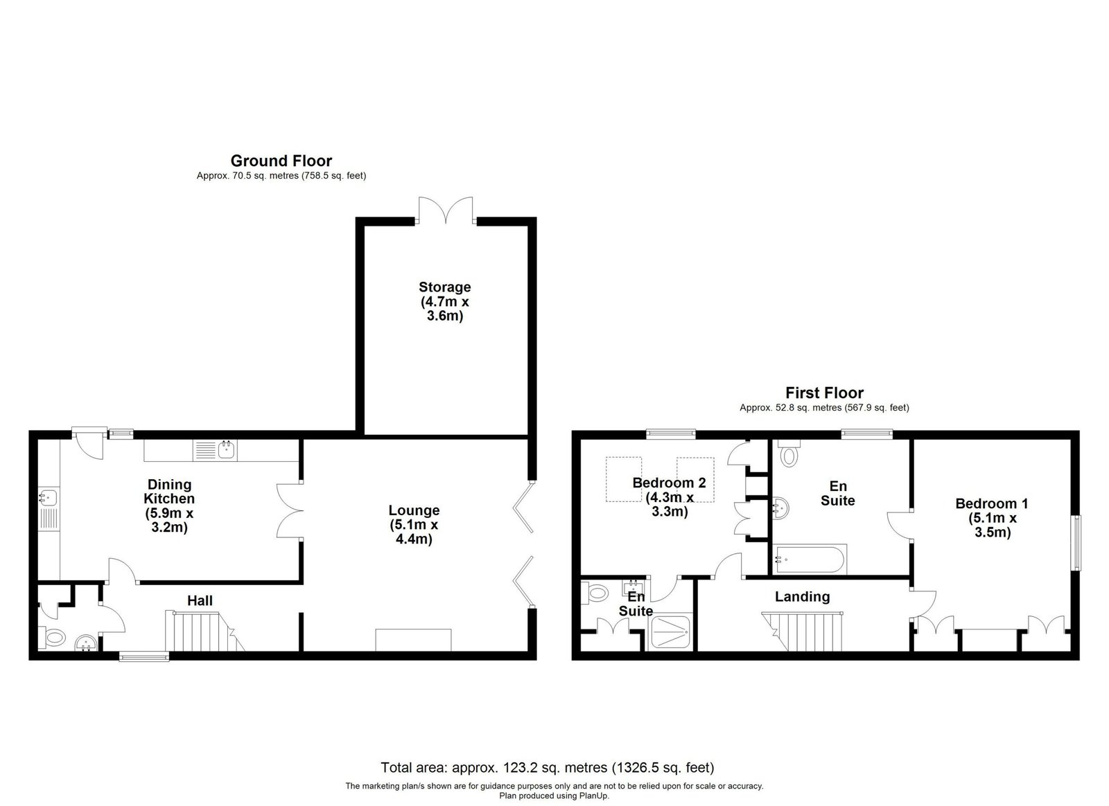 The Barn was restored from the original 16th century farm barn and is constructed of stone under a pantile roof. The accommodation extends to around 1,326 sq ft and is arranged over two floors. The ground floor offers a covered parking and storage area, dining kitchen, lounge, w.c. and hallway. The first floor offers two bedrooms and two en-suite bathrooms. Outside offers ample parking and a lawned garden. * Please note there is repair work needed to this property due to water damage.