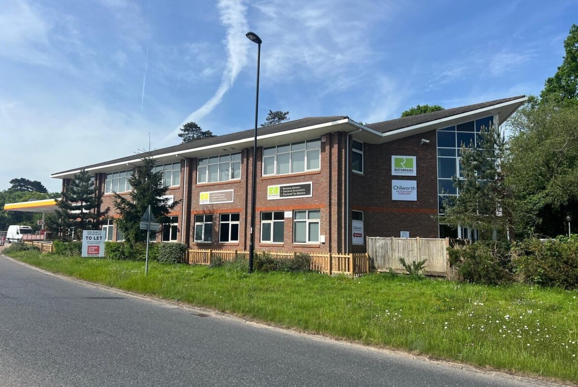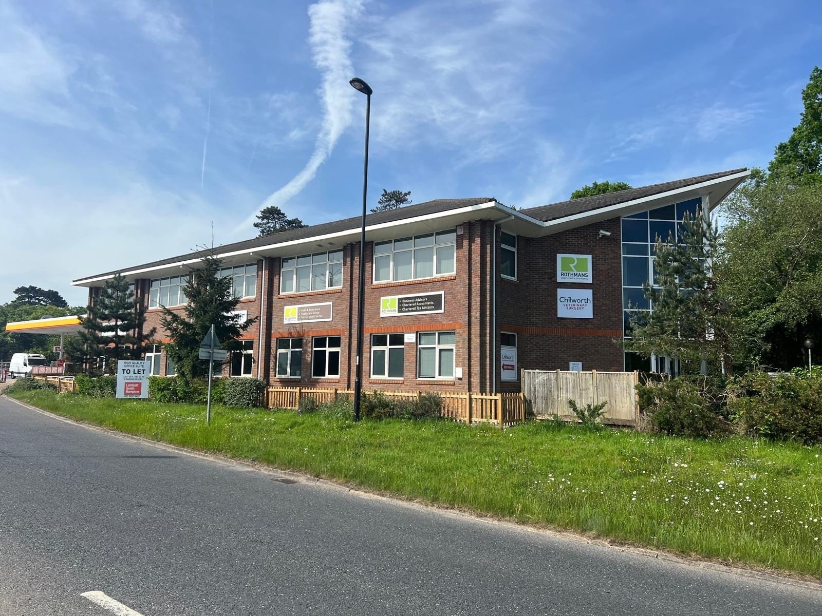 Chilworth Point comprises a two storey office building with brick elevations under a pitched tiled roof. The ground floor suites, which have recently been refurbished, consist of open plan office space with meeting rooms, a kitchenette, LED lighting, comfort air conditioning and fully raised access floors. The offices are accessed through a shared reception and is secured with its own security alarm system. Each suite benefits from eight allocated car parking spaces.