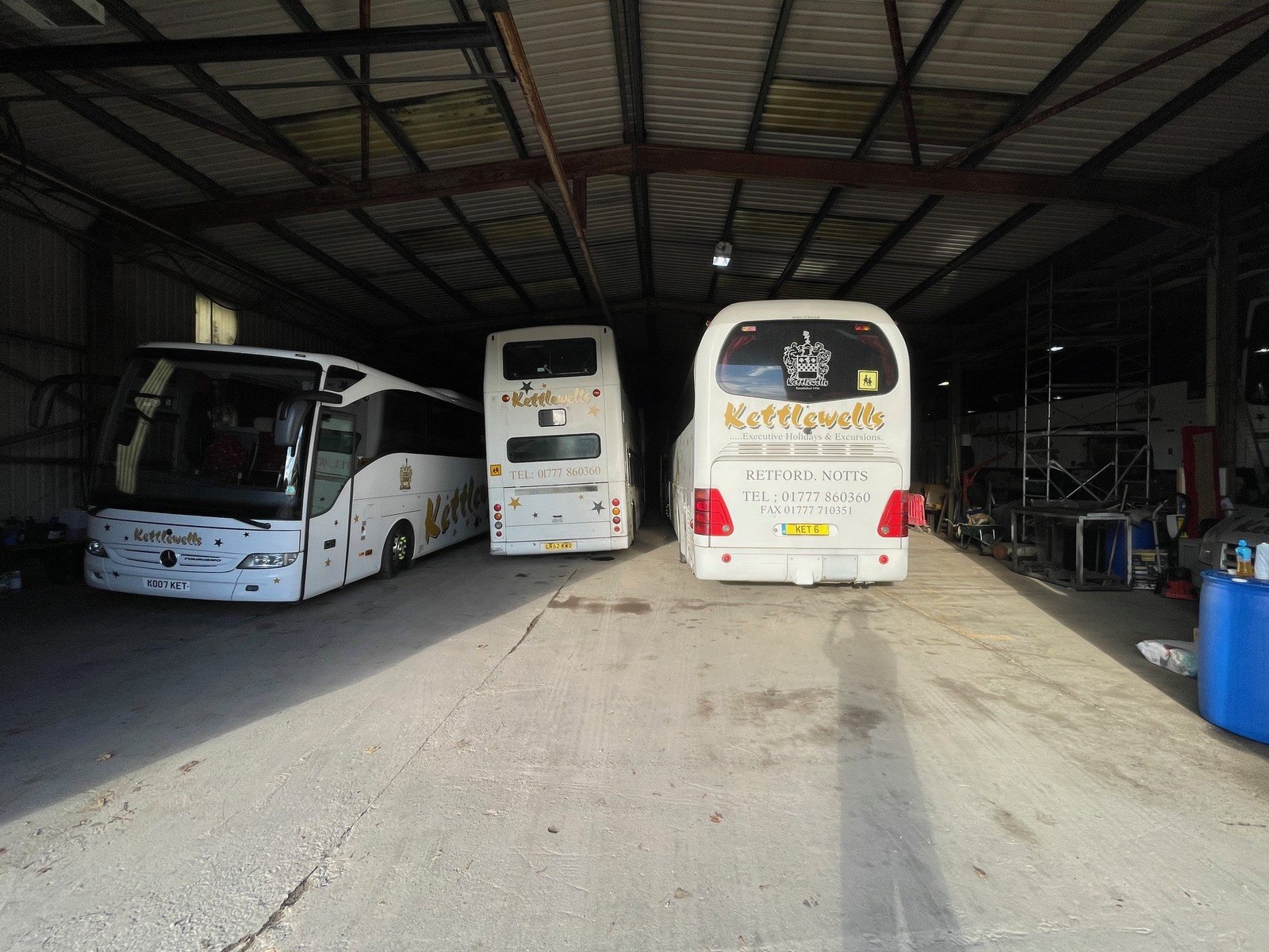 The property is currently run as a coach depot. The site extends to approx. 1.273 acres and includes a large workshop of steel frame construction with two front access doors along with a detached brick office building