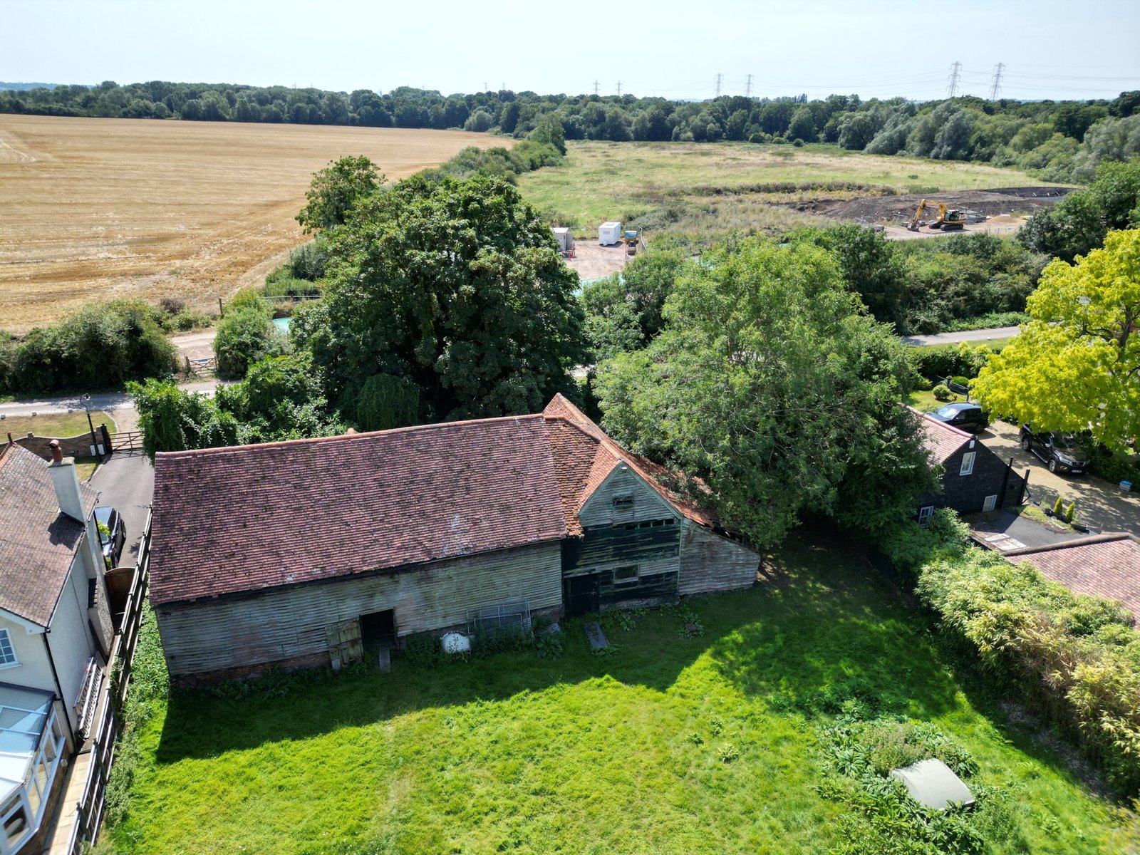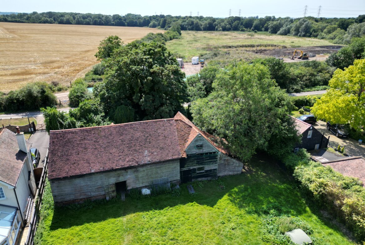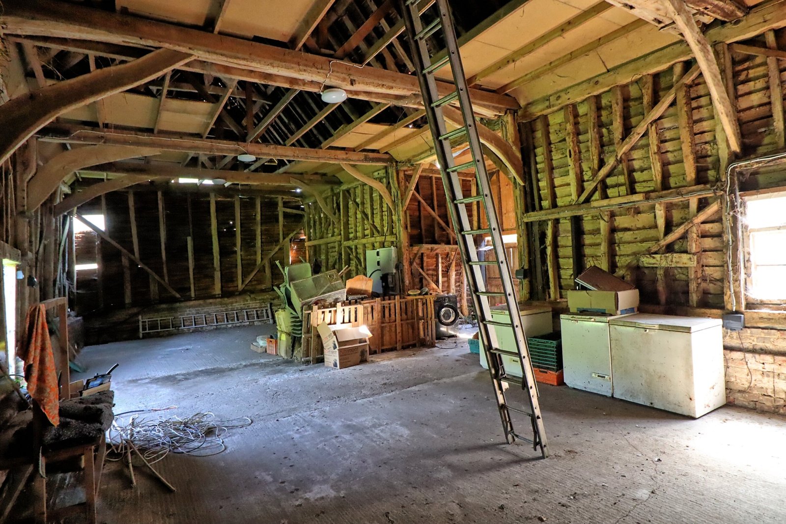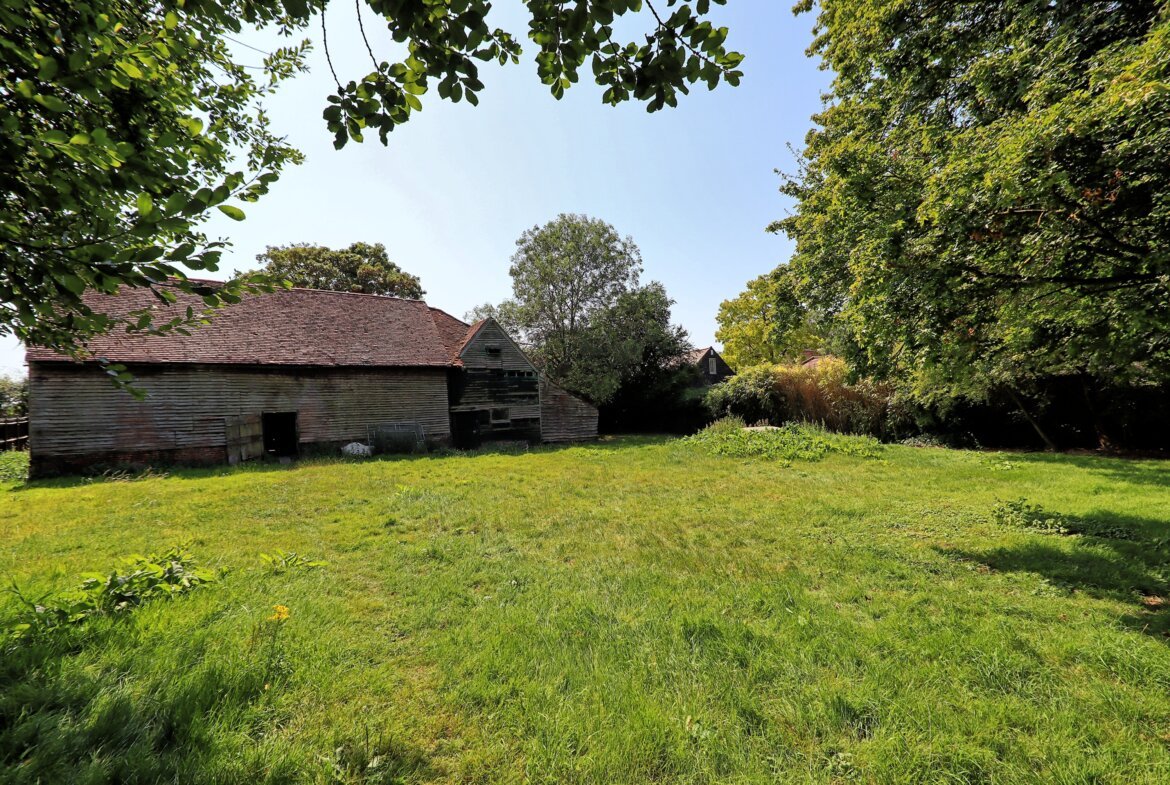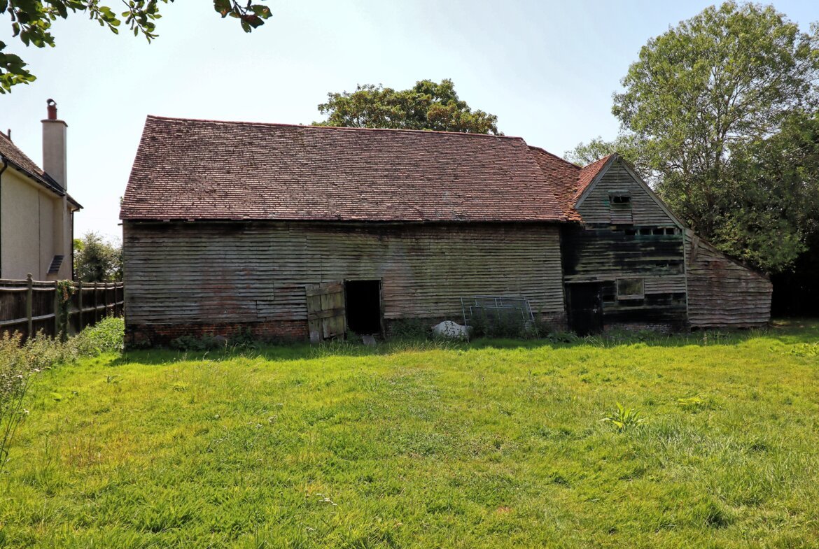 Situated behind a small copse in the south west corner of the site is a Grade II Listed timber barn contained within 0.5 acre of grounds. Permission was granted in 2023 for conversion to a 5-bedroom residential dwelling providing over 2,700 sq ft of accommodation, including the rebuilding of the lean-to side extension and construction of a front extension.