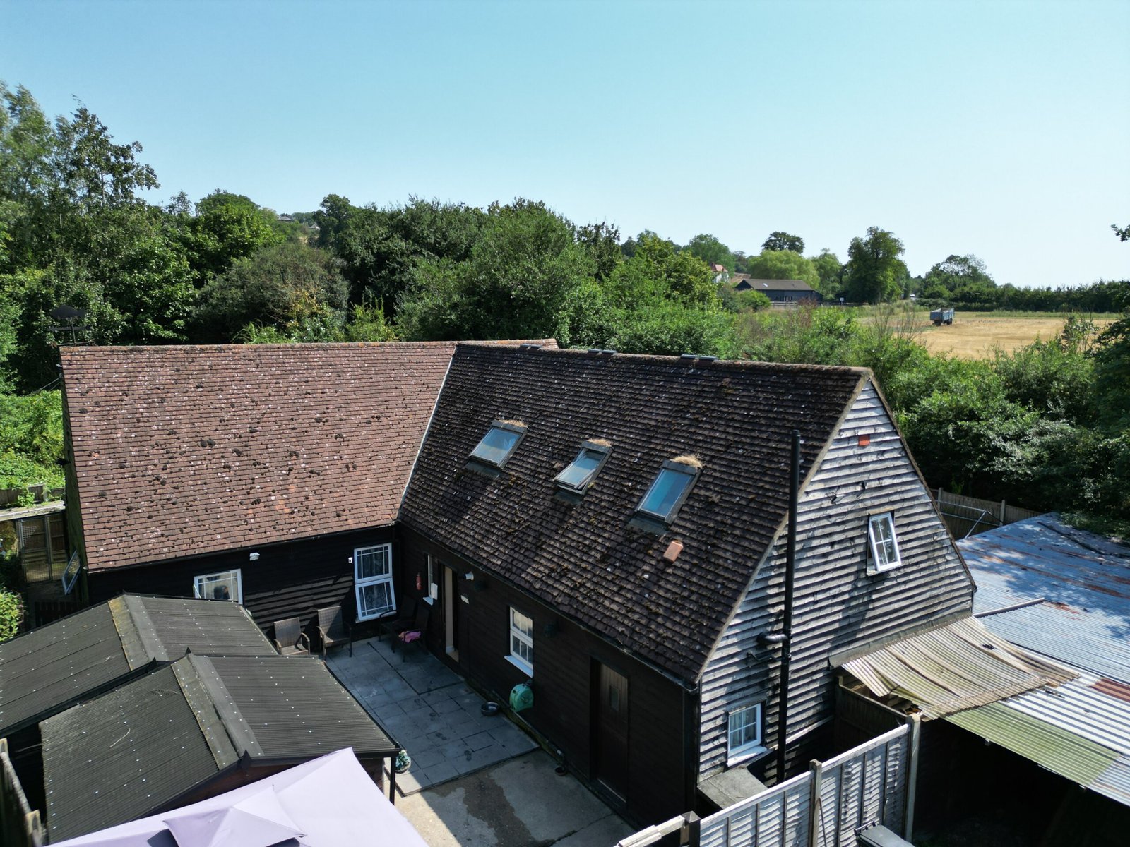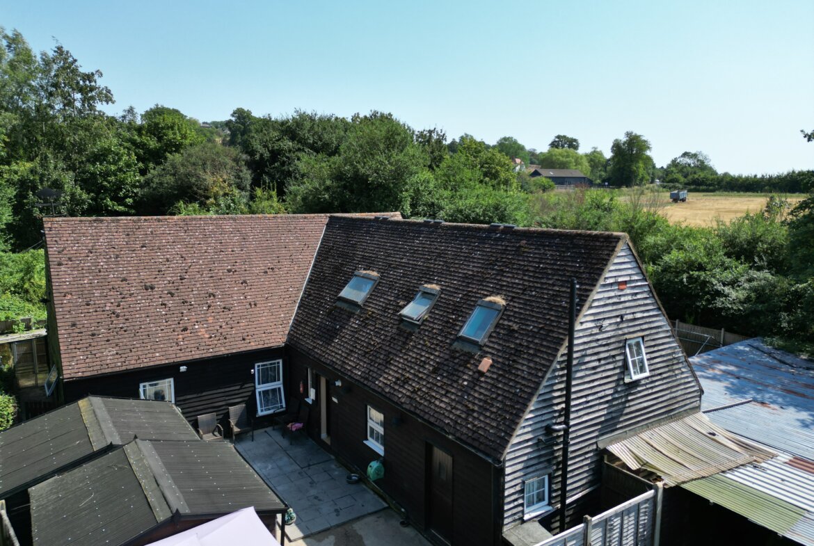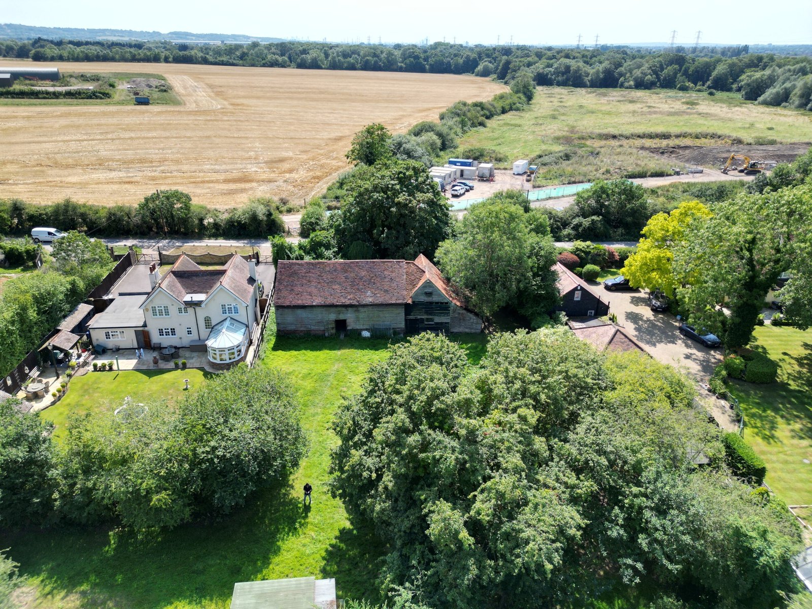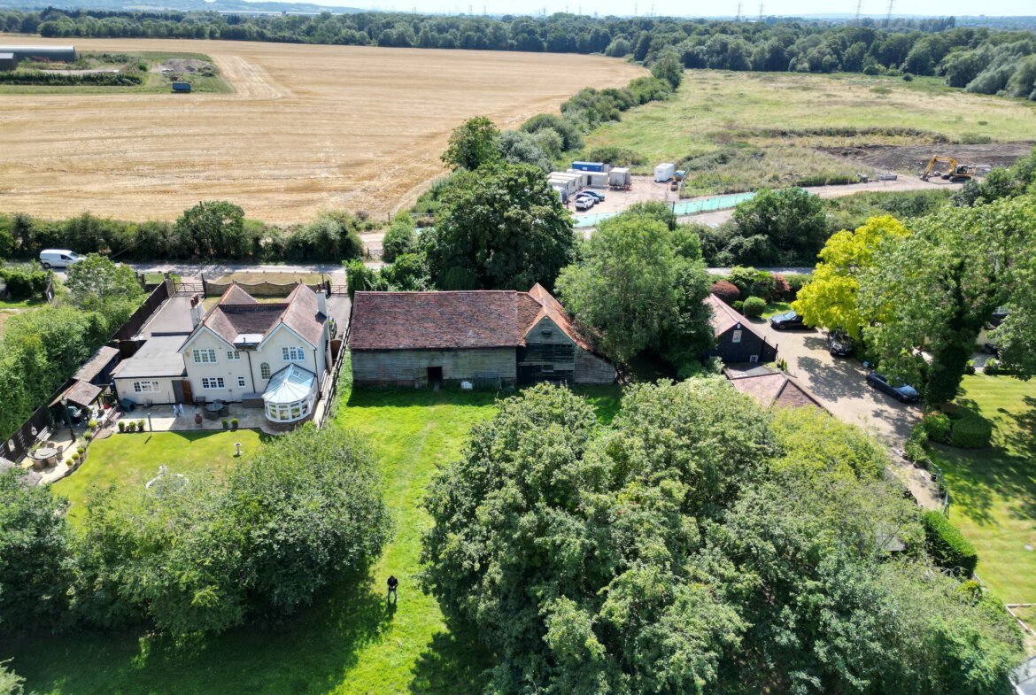 Situated behind a small copse in the south west corner of the site is a Grade II Listed timber barn contained within 0.5 acre of grounds. Permission was granted in 2023 for conversion to a 5-bedroom residential dwelling providing over 2,700 sq ft of accommodation, including the rebuilding of the lean-to side extension and construction of a front extension.