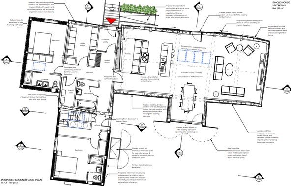 - Grade II listed barn with planning permission for conversion to 5 bedroom dwelling