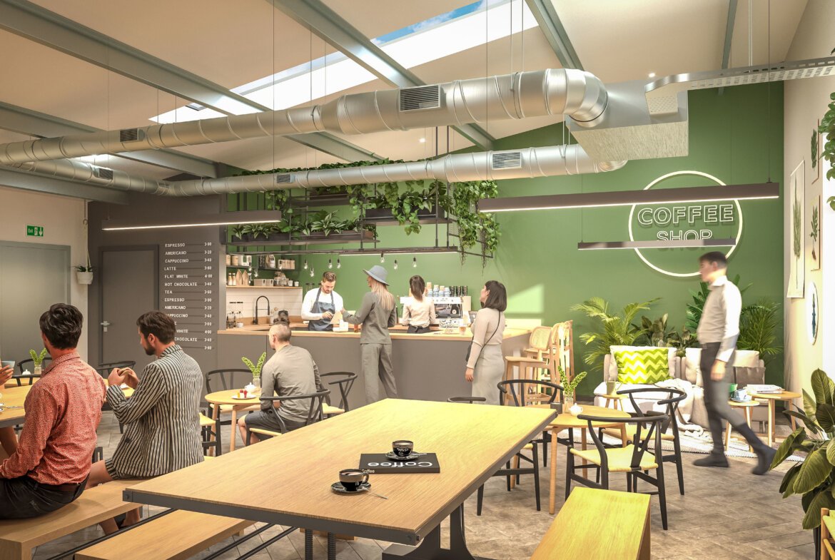 Phase One includes five buildings offering flexible space from 590 ft to 10,560 ft, suitable for a wide range of uses including office, retail, medical, leisure, and food.