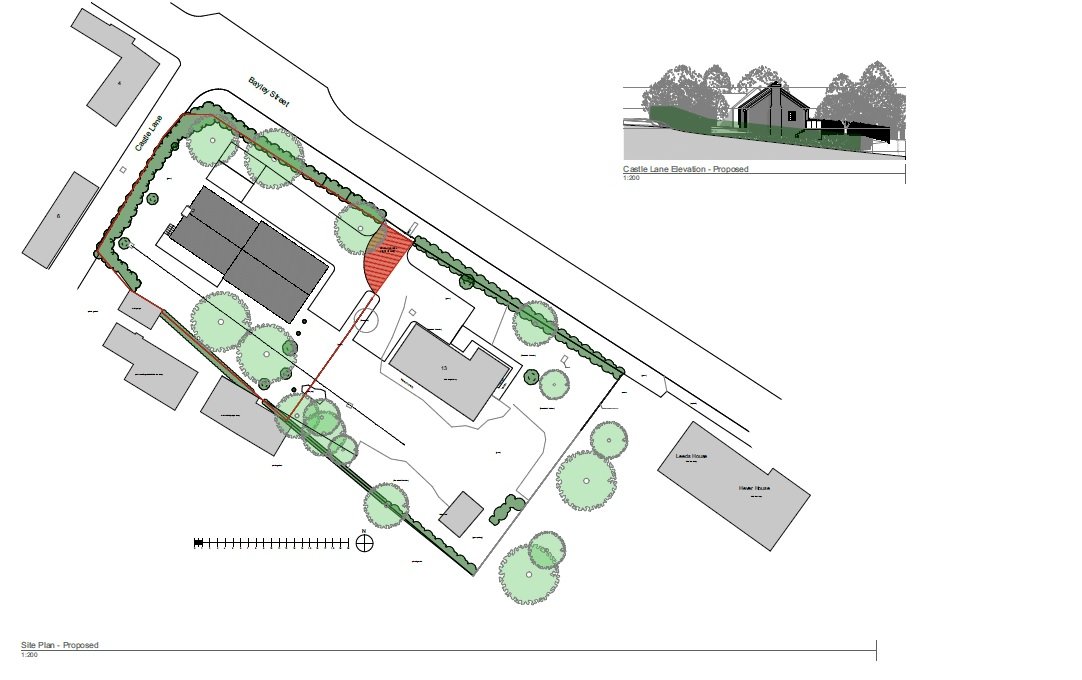 The property comprises a single building plot previously part of the garden to No. 13 , a detached bungalow with frontage to Bayley Street of some 66 metres. The land is bordered on three sides by mature hedges and laid to lawn with some smaller fruit trees and shrub borders .
