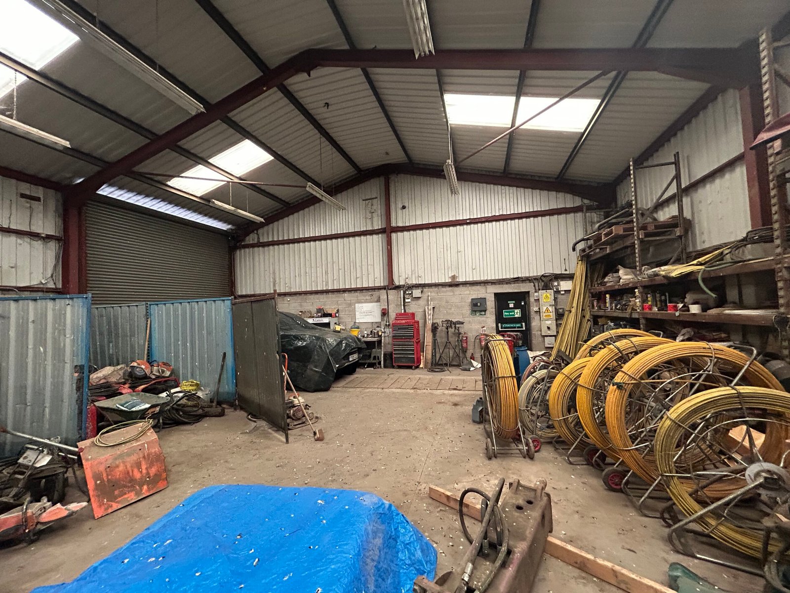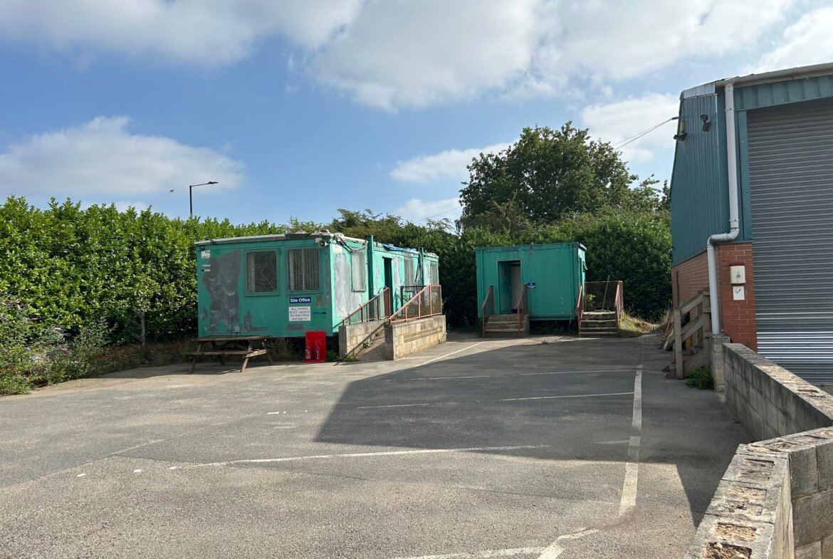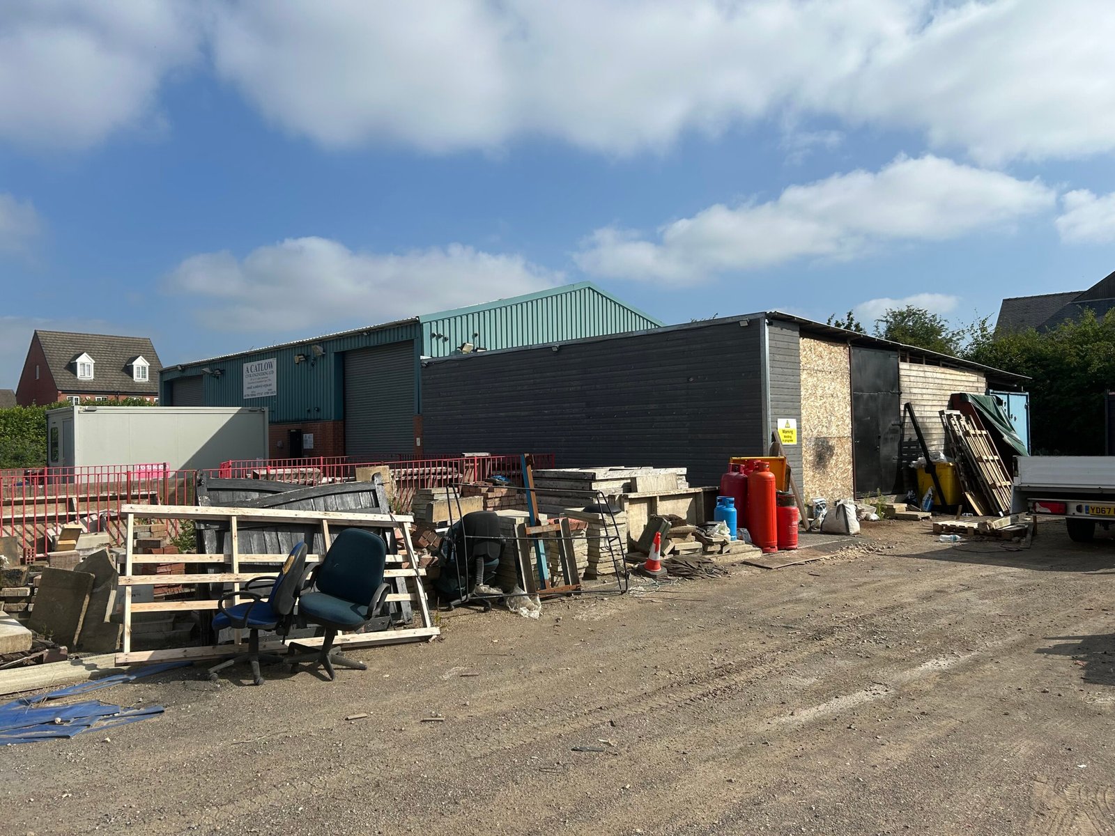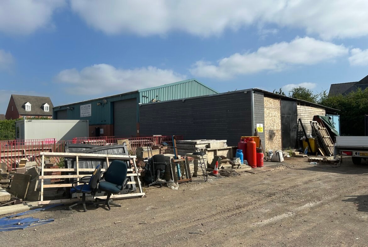 The property is accessed directly off Pastures Road and comprises a detached industrial warehouse with a small mezzanine first floor located above a WC, 2 No. roller shutter doors and pedestrian access door. There are three small containers currently used as offices. The Warehouse is of steel portal frame construction with part brick-built elevation, part metal sheet cladding, under a pitched roof. The attached fitting shed is of steel portal frame elevations sat under a flat roof.