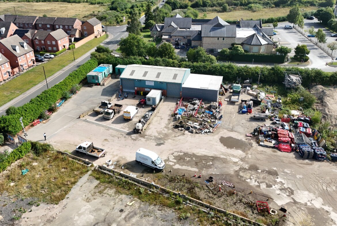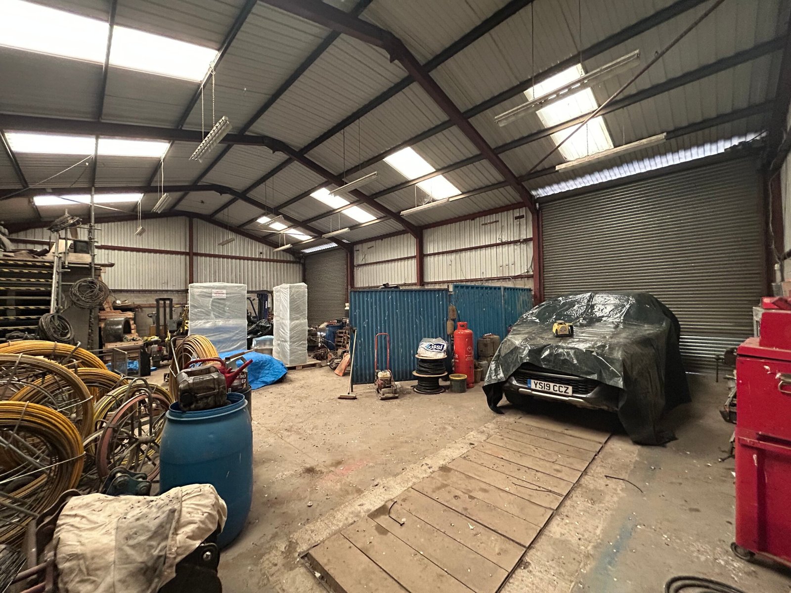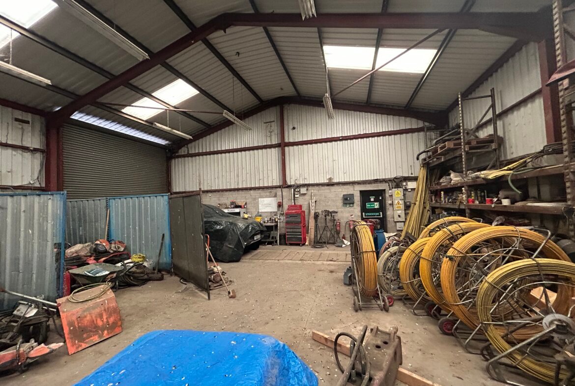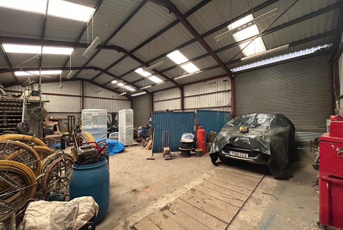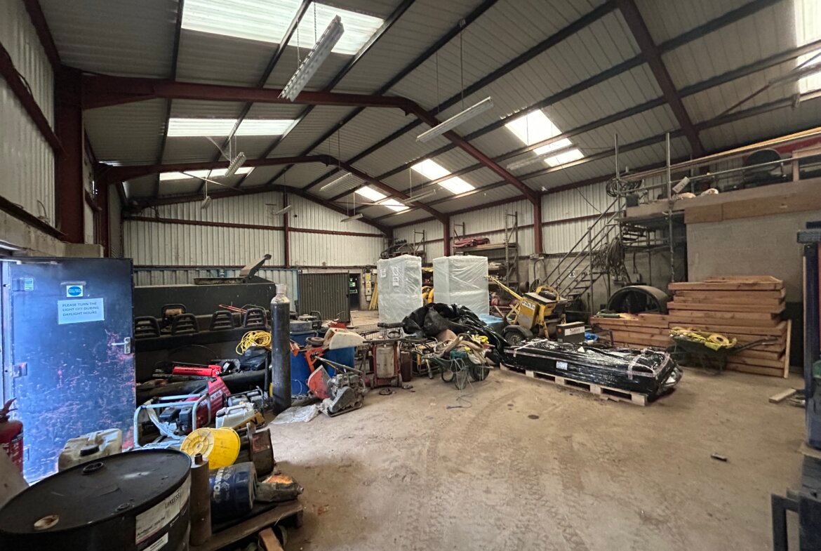 The property is accessed directly off Pastures Road and comprises a detached industrial warehouse with a small mezzanine first floor located above a WC, 2 No. roller shutter doors and pedestrian access door. There are three small containers currently used as offices. The Warehouse is of steel portal frame construction with part brick-built elevation, part metal sheet cladding, under a pitched roof. The attached fitting shed is of steel portal frame elevations sat under a flat roof.