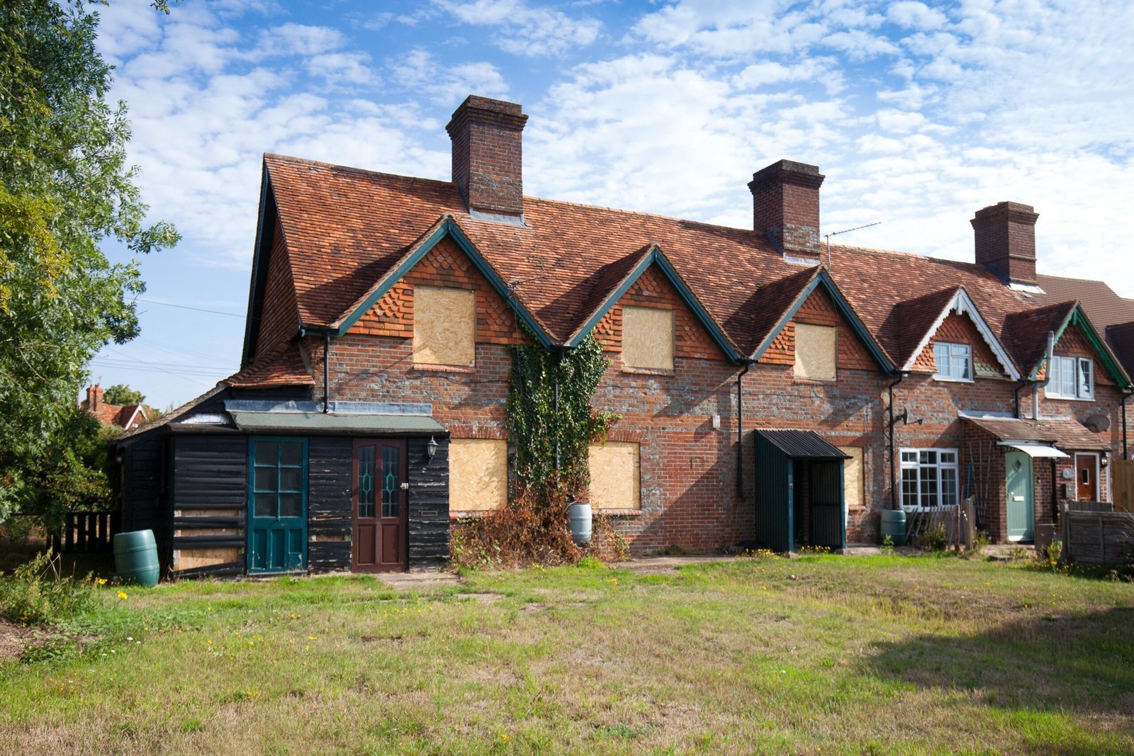 Currently occupying the site are a pair of traditional estate cottages constructed of red brick under a tile roof, both of which require full renovation and refurbishment. The cottages are set within a good sized plot which extends to the south (and includes the site of the consent for the additional new dwelling).