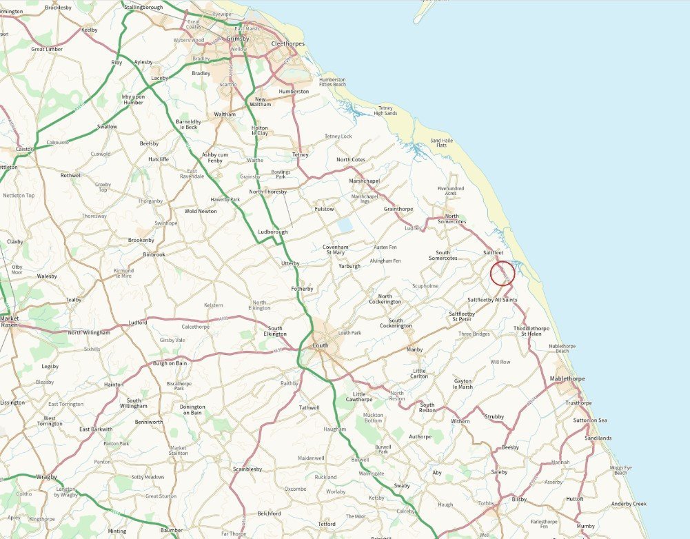 The property is located approximately 3.4 miles to the east of the village of Saltfleetby, 10.9 miles to the east of the town of Louth, and 38.5 miles to the east of the city of Lincoln.