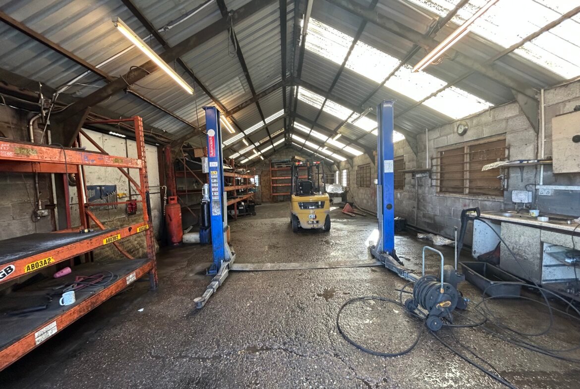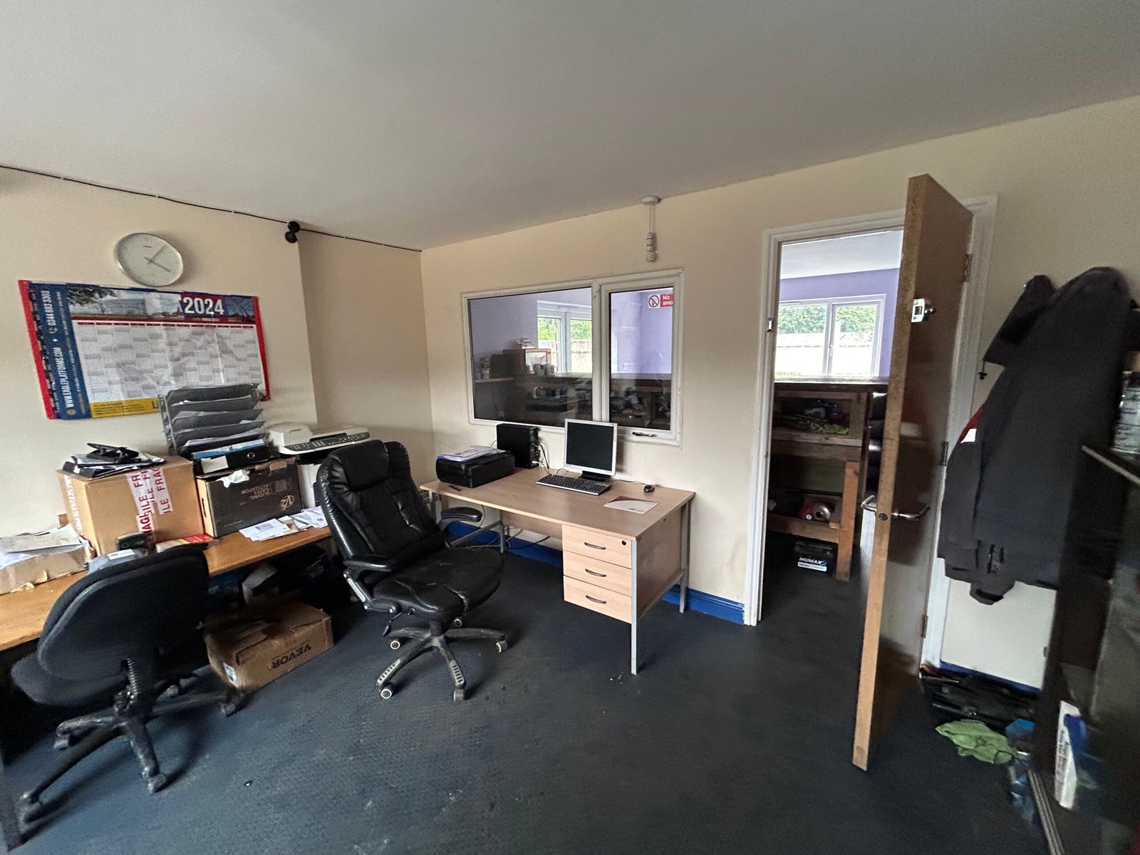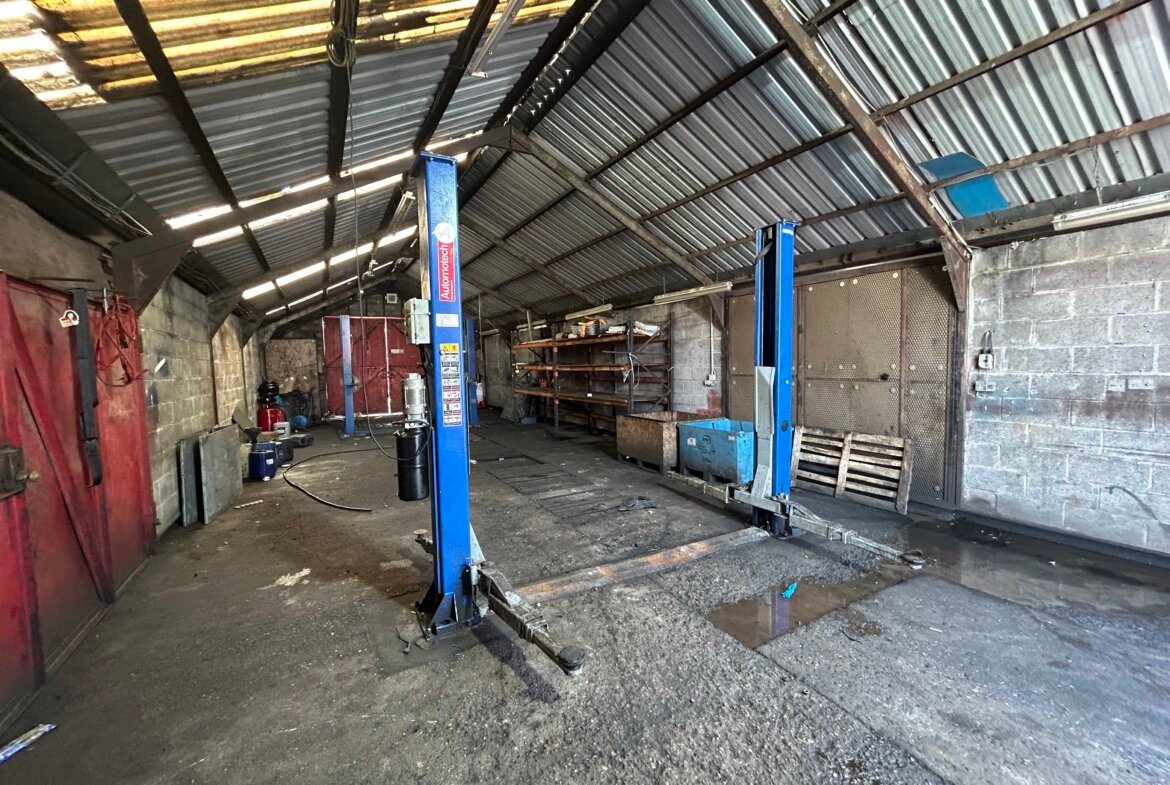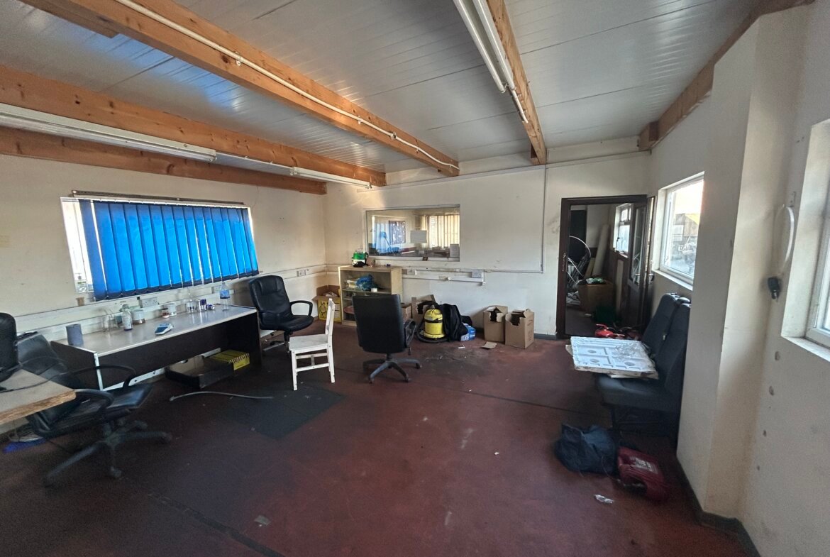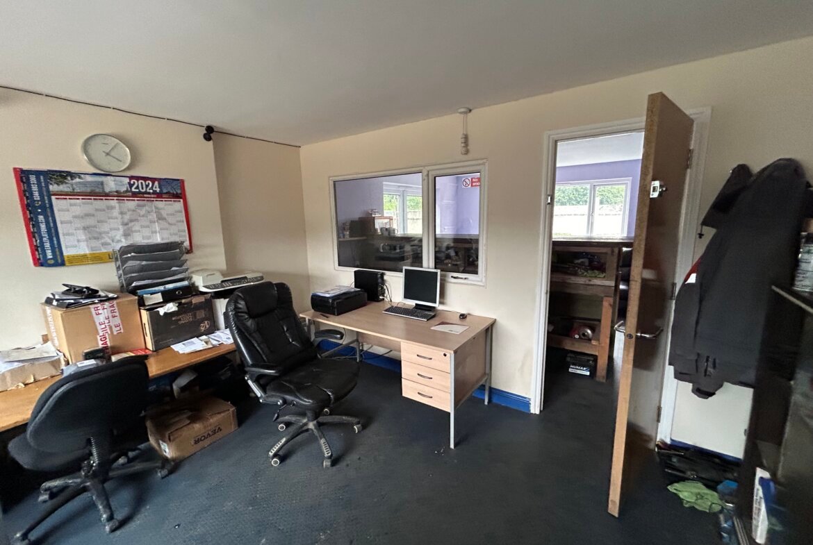 Site 2 extends 0.57 Ha (1.40 acres) and is currently operating as a salvage and breakers yard. The site benefits from a range of 3 linked workshop units of steel portal frame with pitched profile clad roof, blockwork elevations and concrete floor construction. The office is of timber frame with profile clad roof, blockwork walls and uPVC windows and doors. The compound benefits from steel palisade fencing around the perimeter, with security gates and hardstanding surface.