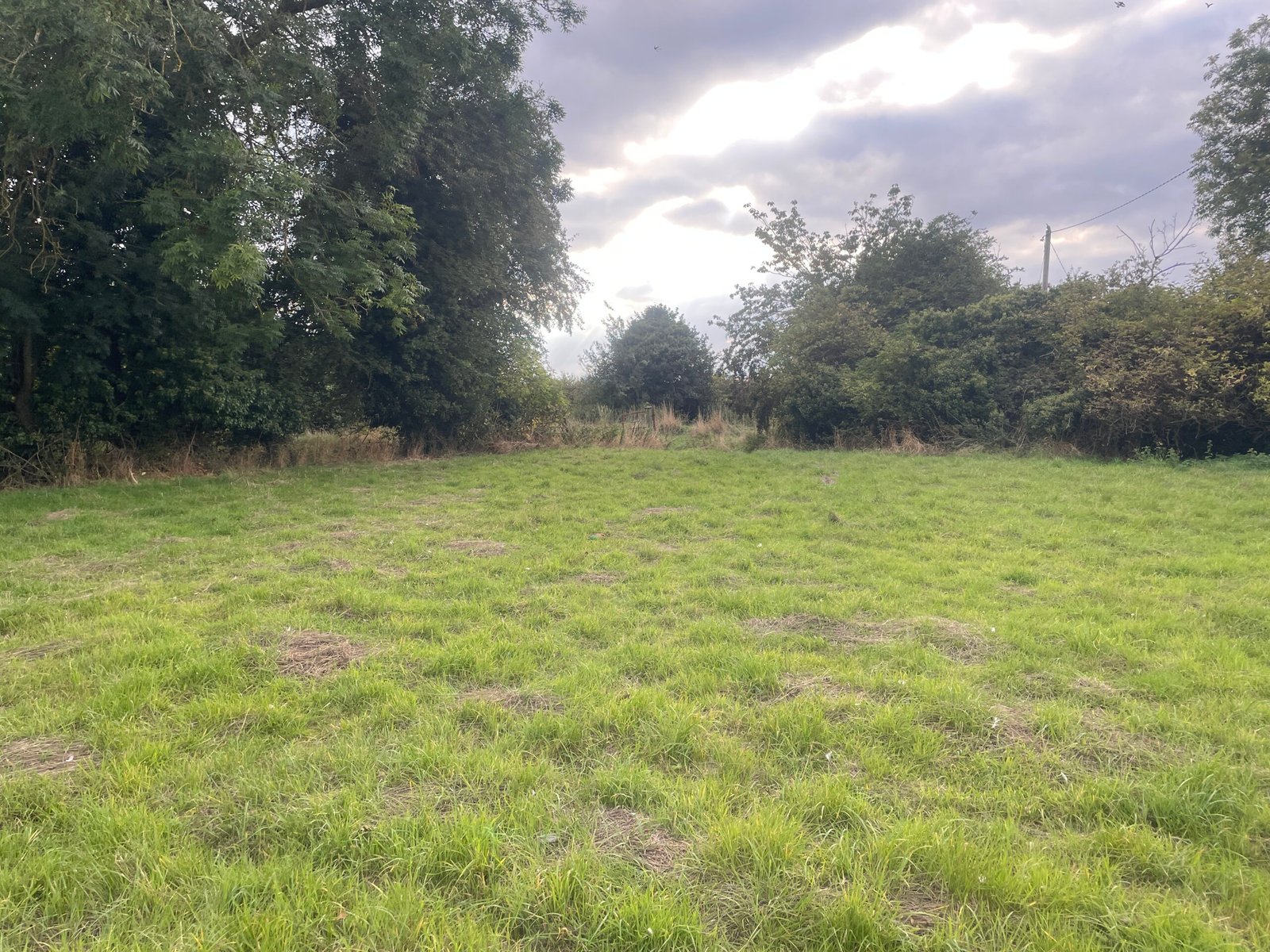 The land has historically been grazed and is currently unfenced, with natural boundaries formed by a shallow ditch to the south and a variety of mature trees. Telephone poles cross the property from the south-west to the northern boundary.