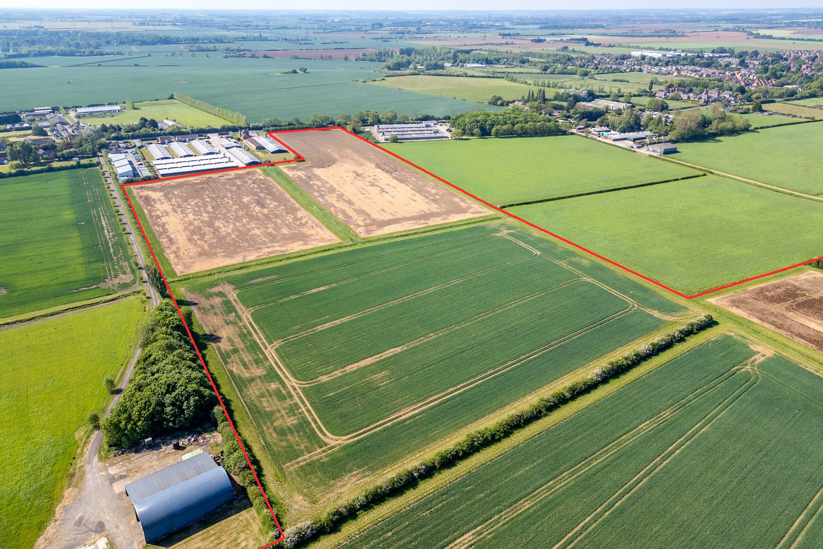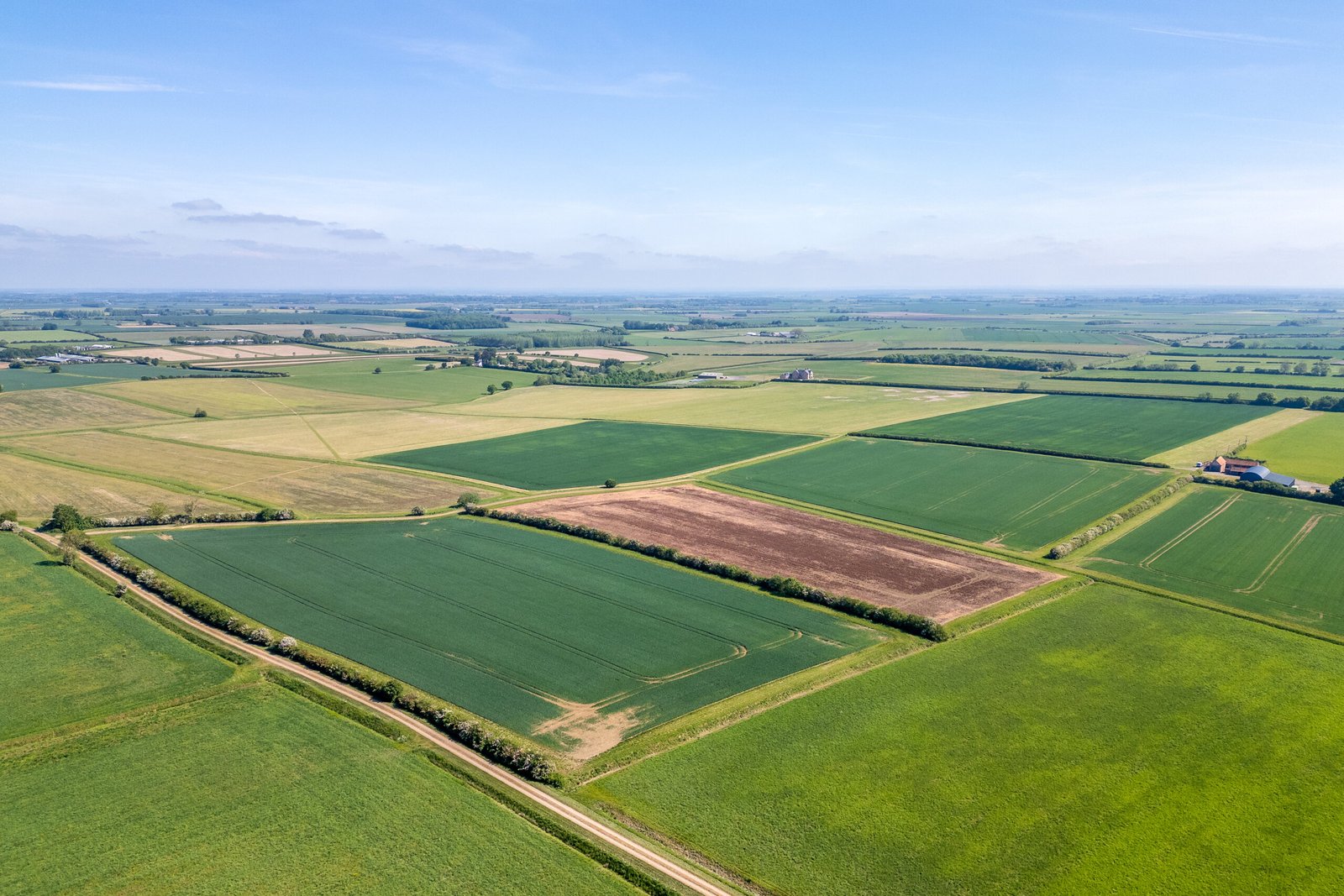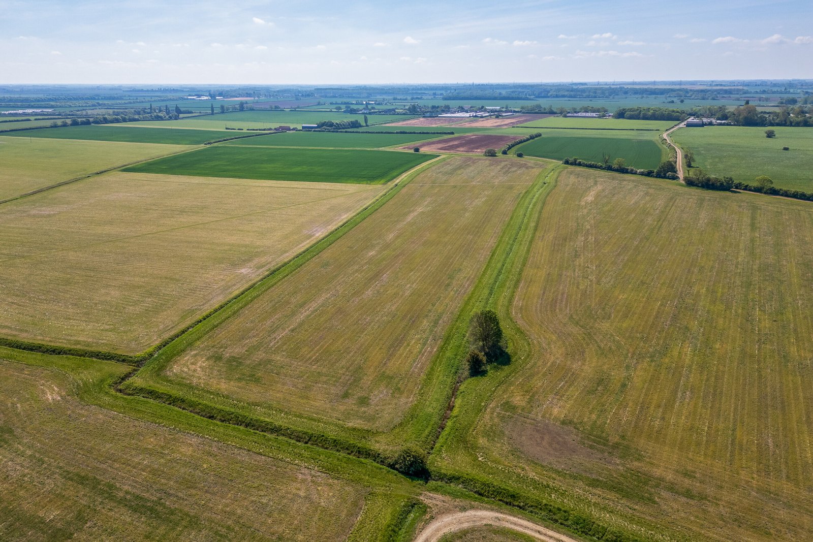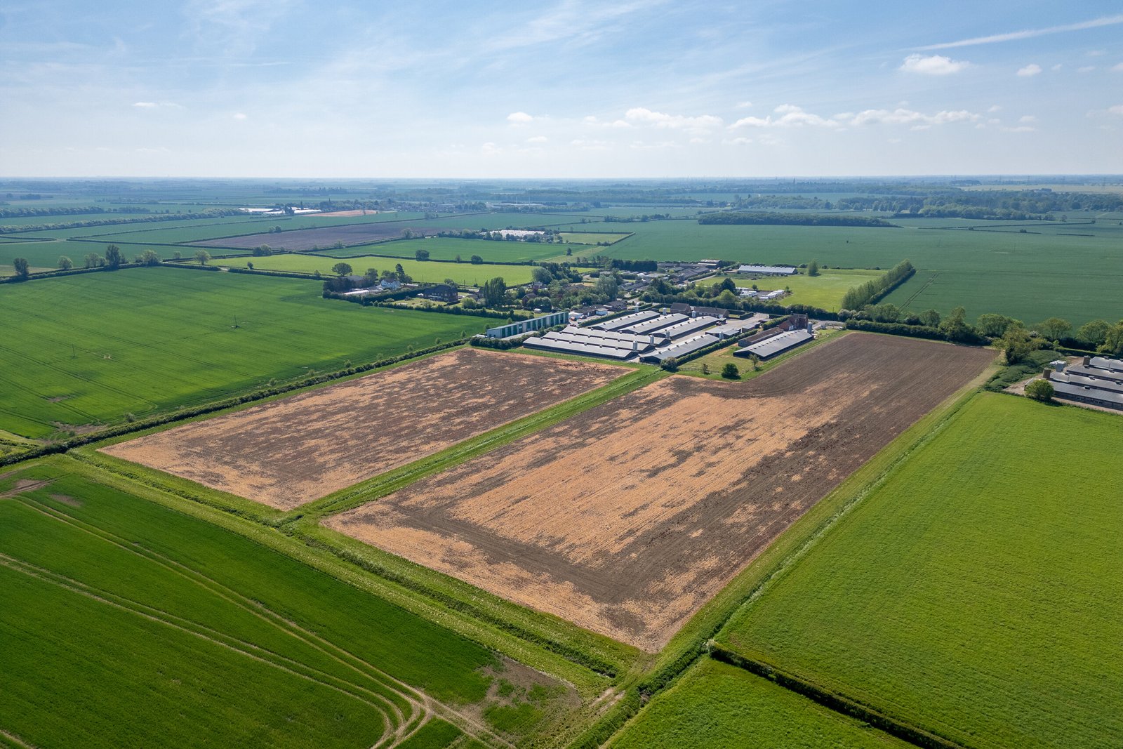 The block of bare arable land is made up of a number of fields separated by ditches. The track which runs through Lot 1 spurs east to allow access to the northern fields of Lot 2.